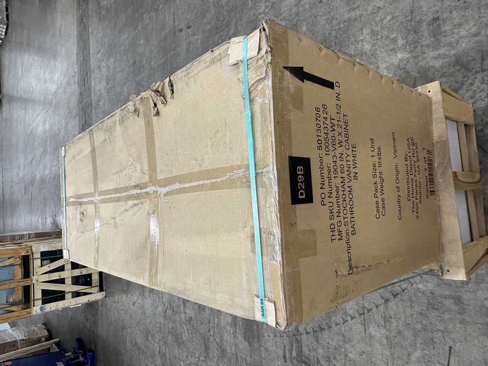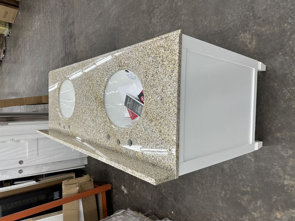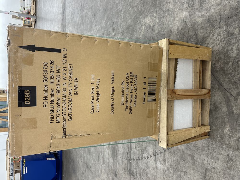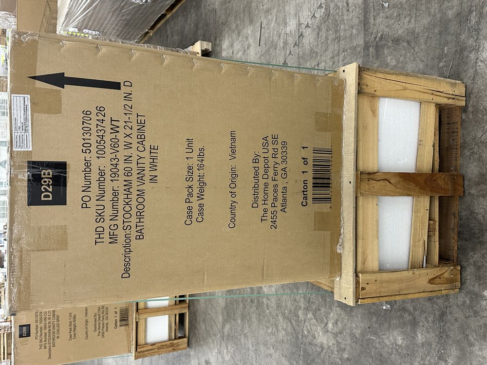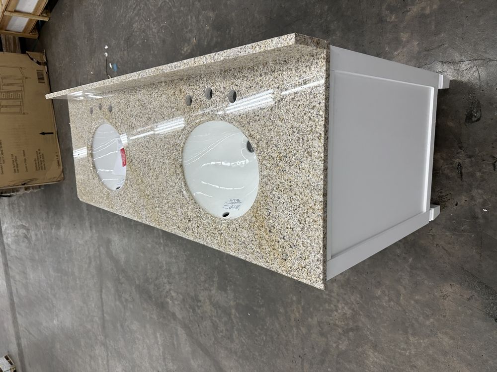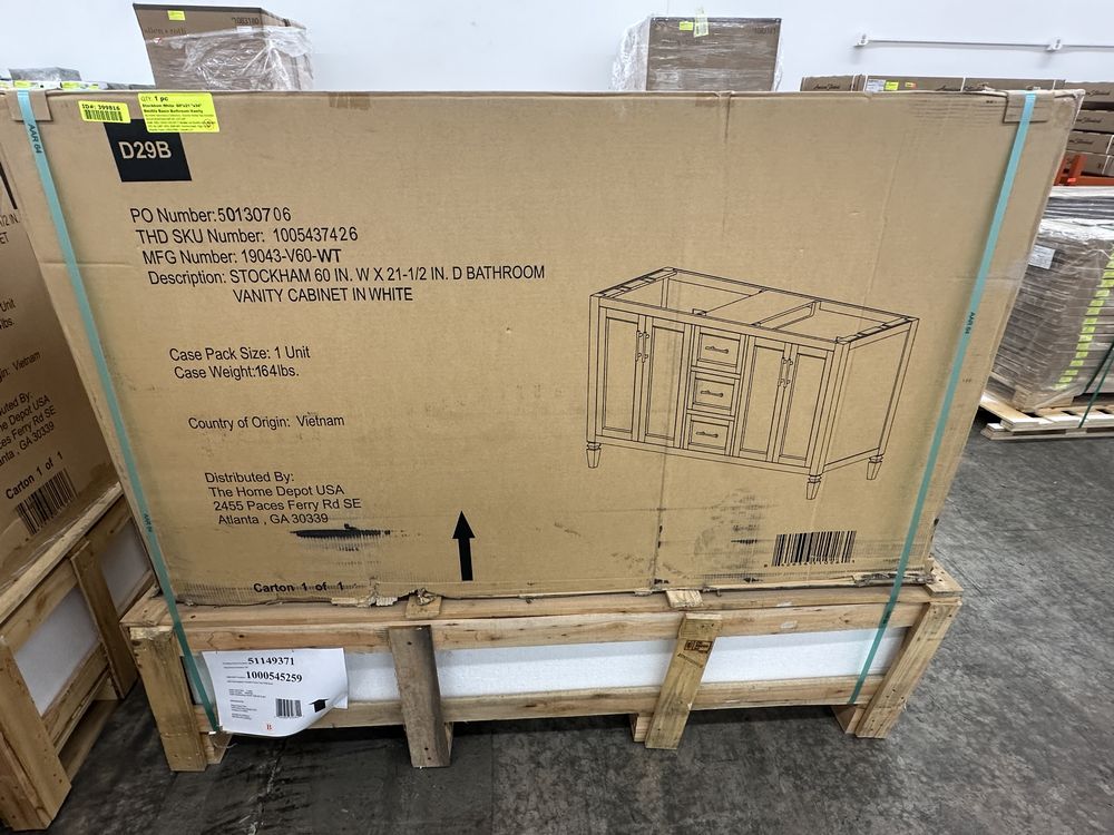Stockham White 60"x21"x34" Double Basin Bathroom Vanity. By Home Decorators Collection, Granite Vanity Top Included, Actual Dimensions 60"x21 1/2"x34" Grade: 1st Quality. Weight: 355. Sold by: Piece. Sold as: Price X Quantity. Inventory #: 5081-19043-V60-WT-T