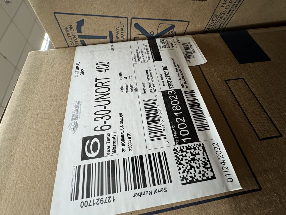 30 Gallon Natural Gas Water Heater. By Reliance, 33000 BTU, 61.56" Tall, 16" Diameter, Grade: 1st. Weight: 126. Sold by: Piece. Sold as: Price X Quantity. Inventory #: 11102-NG 30