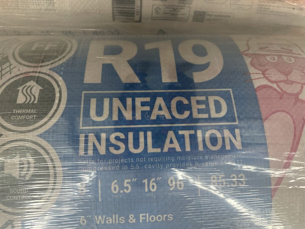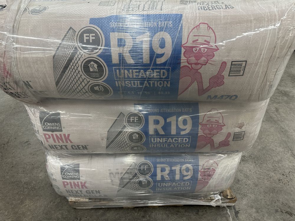 R-19 Unfaced Fiberglass Bagged Insulation. R Value 19, Made By Owens Corning, 16"x96" 8 Pieces 85.33 Square Foot Coverage, Grade: B. Weight: 530. Sold by: Bag. Sold as: Price X Quantity. Inventory #: 2221-BG 0001G