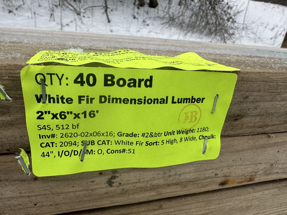 White Fir Dimensional Lumber 2"x6"x16'. S4S, 512 Board Foot, Grade: #2&btr * Weathered, Lite Mold, See Photos*. Weight: 1180. Sold by: Board. Sold as: Price X Quantity. Inventory #: 2620-02x06x16