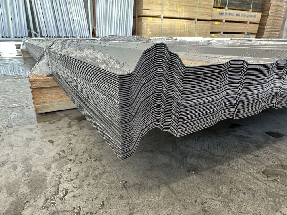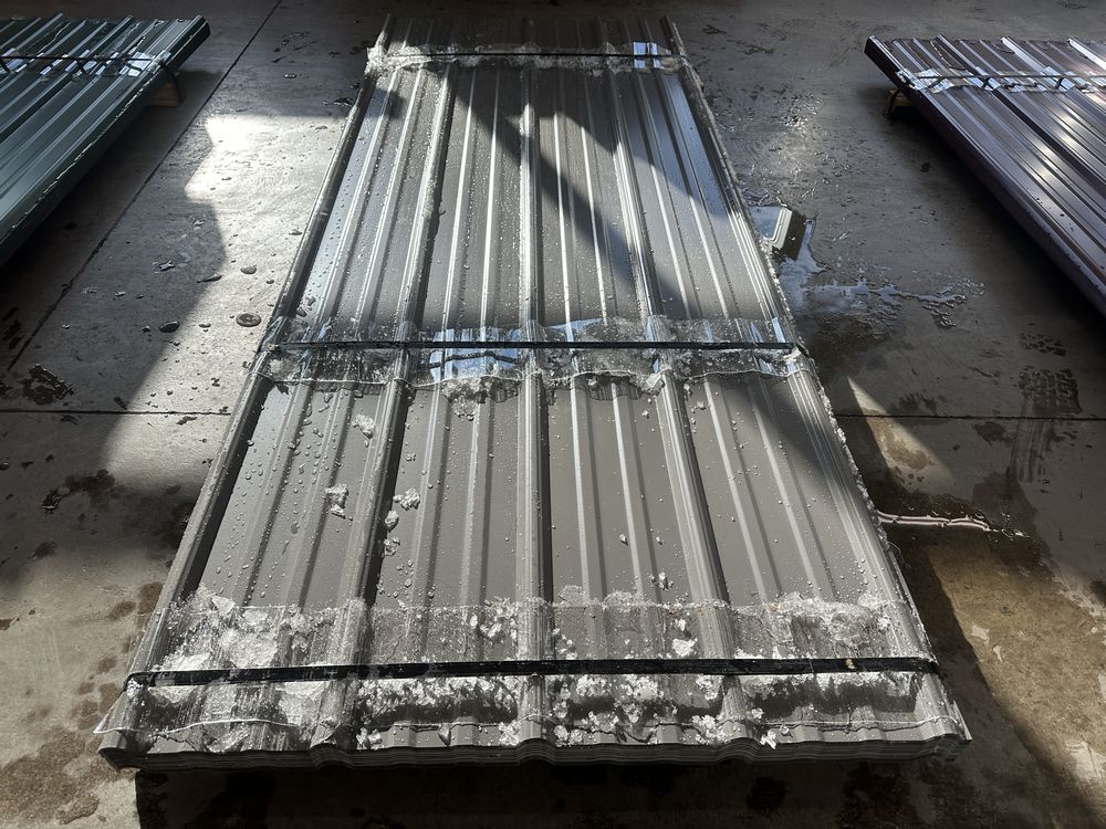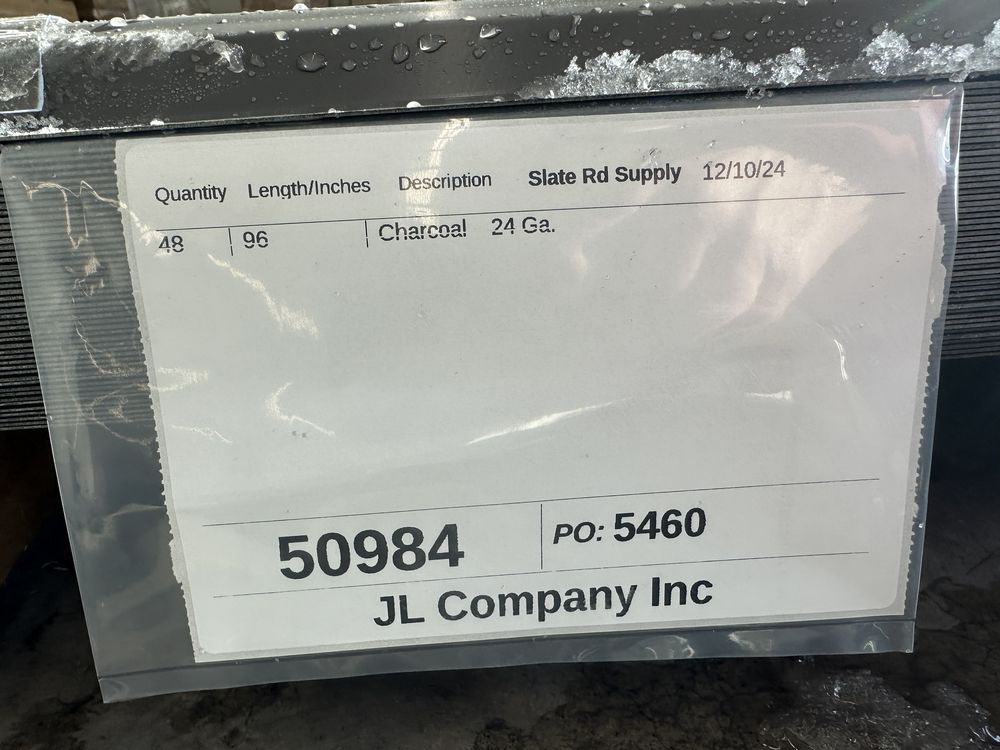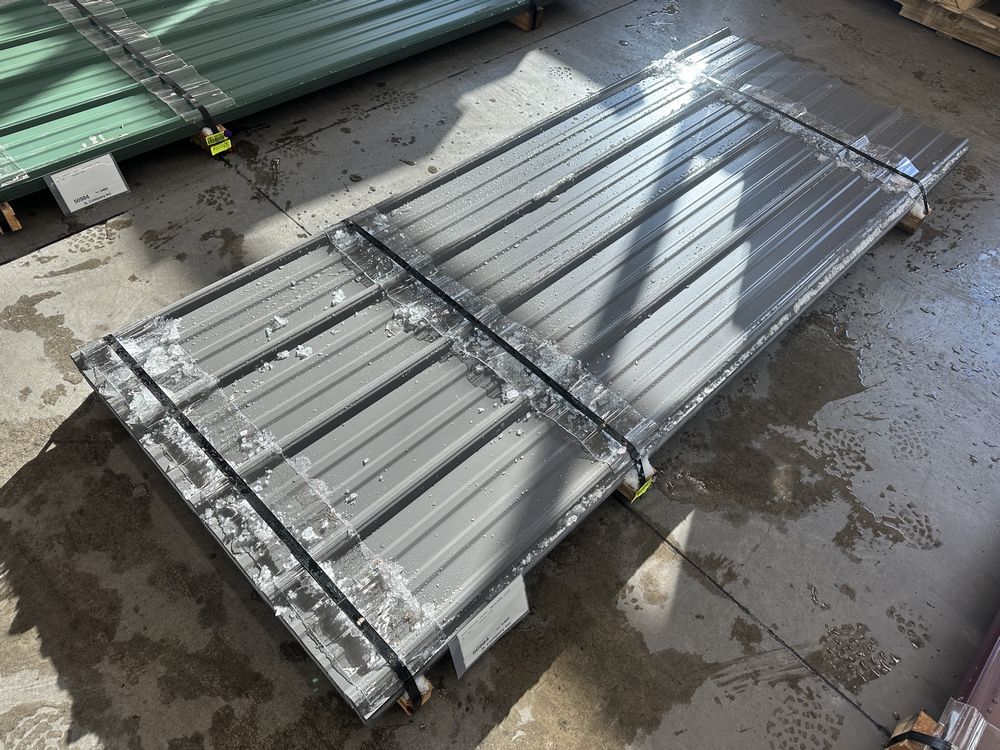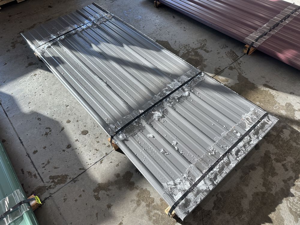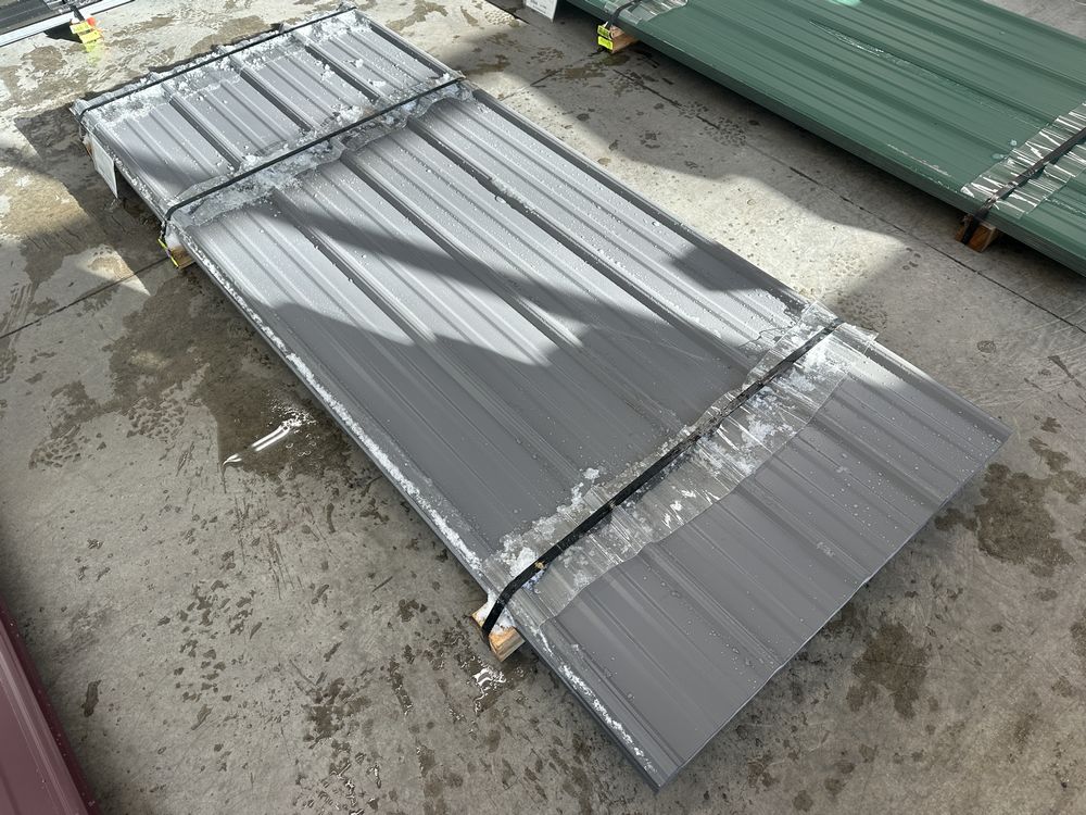 Charcoal Corrugated Metal Panel 3'x8'. 24 Gauge, 48 Pieces,Grade: B, Metal can be labeled as "B Grade" for many reasons. Some may include possible paint imperfections such as; off colors, light or heavy coating, dirt in paint, paint splash or blisters. They may contain steel imperfections such as; creases, wrinkles, wavy edges, dents, or general handling damage. When bidding on Grade B metal panels please don't assume that any two lots are the same. If you want to buy more than one (1) lot and need the same color please call us at 607-865-6951 to have us inspect the lots before you purchase. Weight: 1210. Sold by: Linear Foot. Sold as: Price X Quantity. Inventory #: 2850-GRY 3xRL