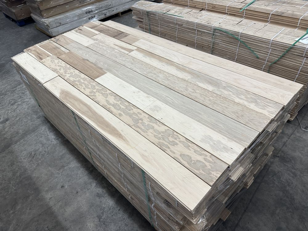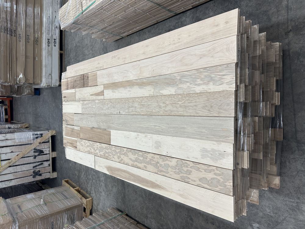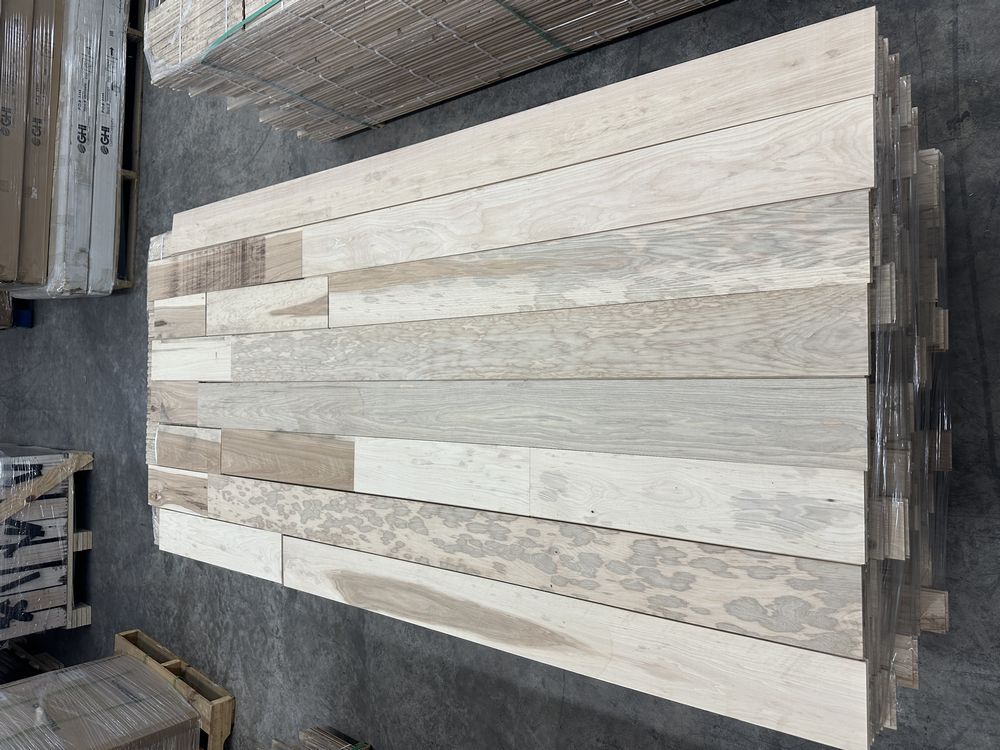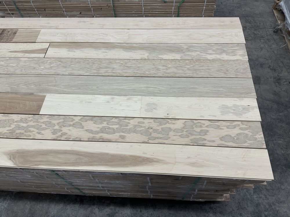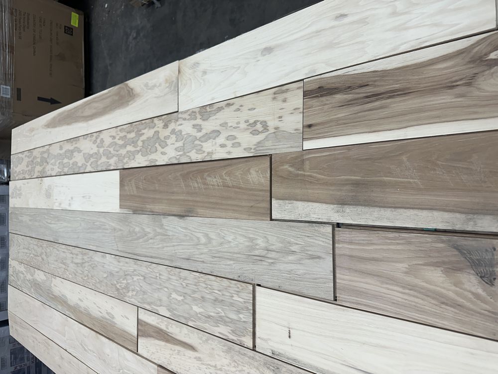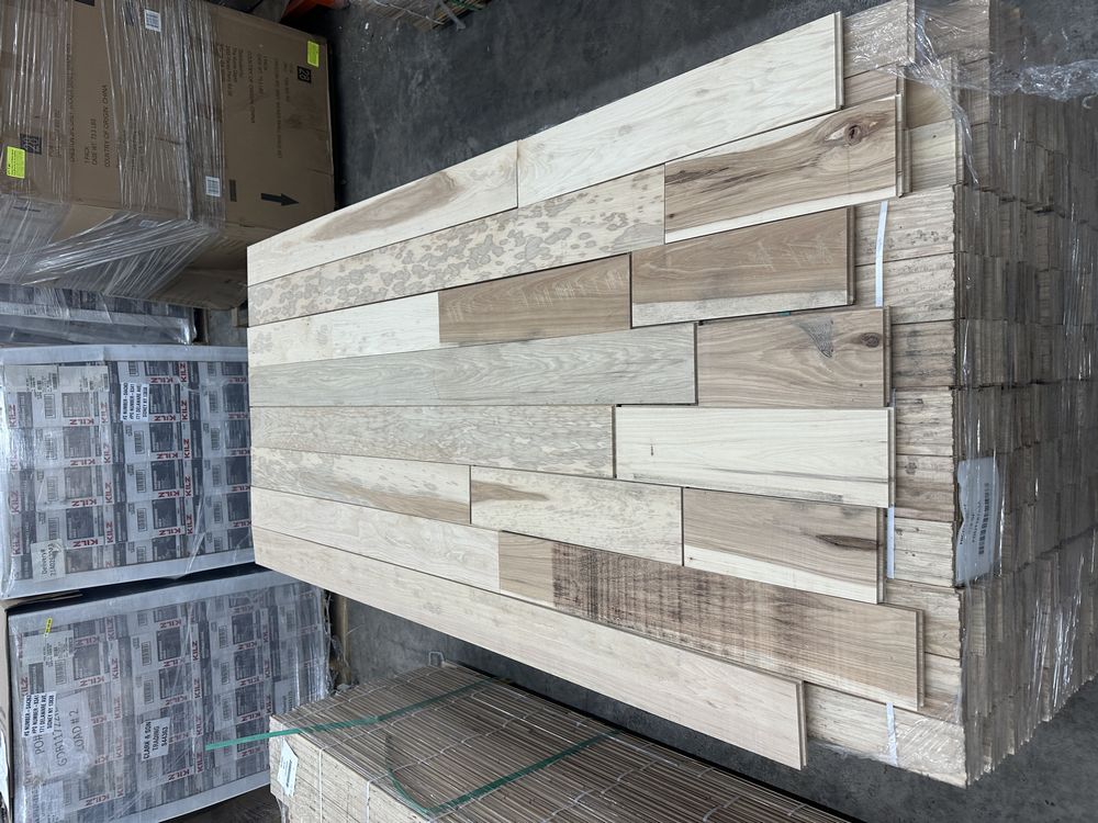 Hickory Solid Hardwood Flooring 3/4"x5"xRL. By Merrick Hardwood, Unfinished, 864 Square Foot, Grade: Cabin. This flooring product will have varying wood characteristics and colors to include streaks, deeper knots and burls, small splits, wormholes, and even marks during the milling process such as machine burns. It may also have a large variance in color and grain patterns. The boards are typically 10” to 30” with an average board length of 16”. It is usually packaged in mini bundles of 18-20 sf per bundle. It is ok for 5” wide to be heavier in shorter pieces. Cabin grade is a stable, installable product but please account up to 10%-20% waste. Weight: 2500. Sold by: Square Foot. Sold as: Price X Quantity. Inventory #: 2141-UF HIC 3/4x5xRL