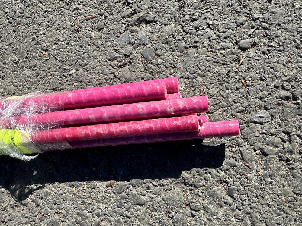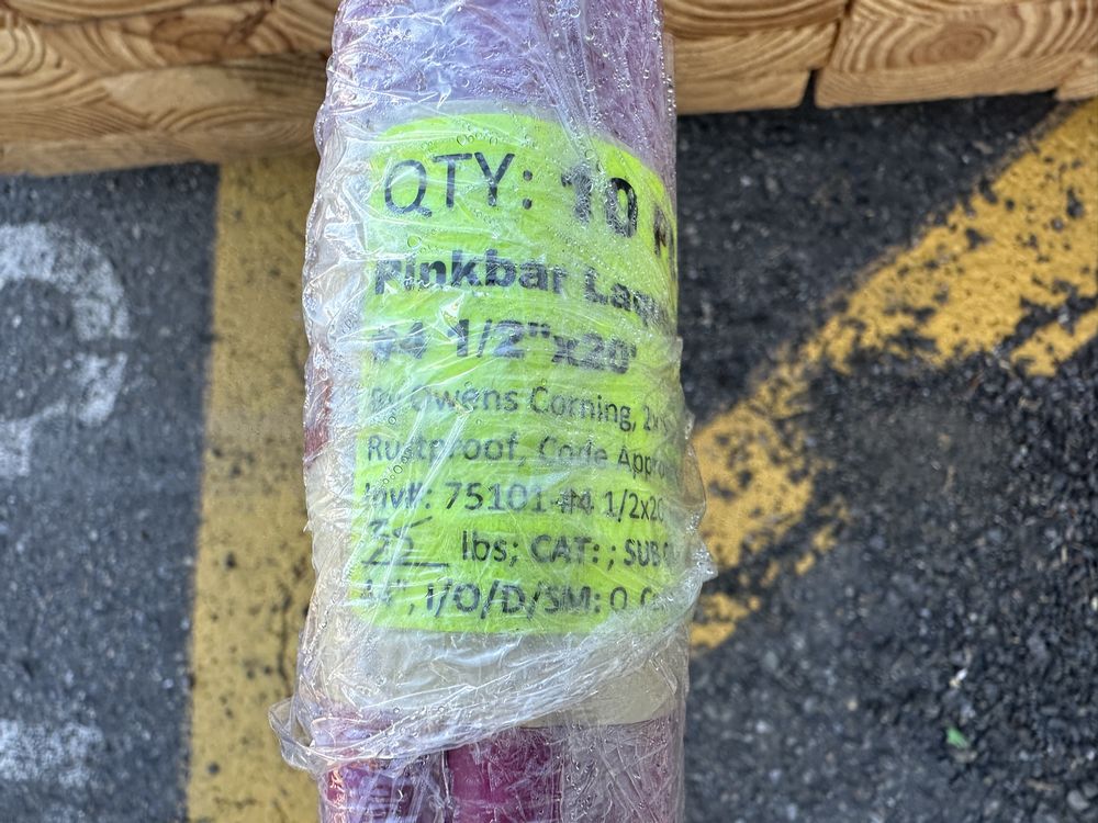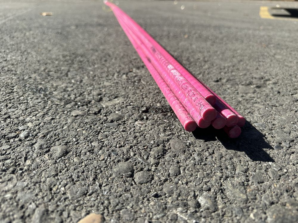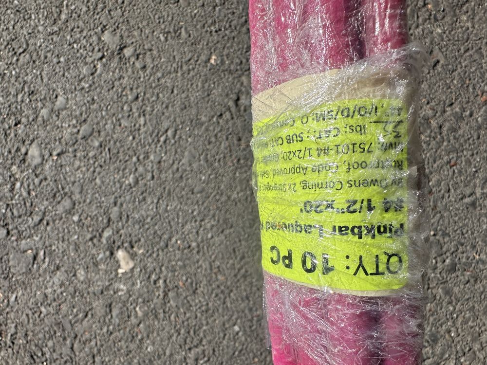 Pinkbar Laquered Fiberglass Rebar #4 1/2"x20'. By Owens Corning, 2x stronger and 7x lighter than steel, Rustproof, Code Approved, Safe Handling, Grade: 1st Quality. Weight: 35. Sold by: Piece. Sold as: Price X Quantity. Inventory #: 75101-#4 1/2x20