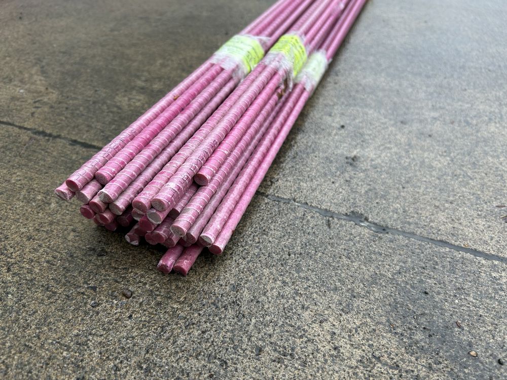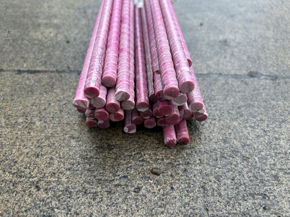 Pinkbar Laquered Fiberglass Rebar #3 3/8"x20'. By Owens Corning, 2x stronger and 7x lighter than steel, Rustproof, Code Approved, Safe Handling, Grade: 1st Quality. Weight: 175. Sold by: Piece. Sold as: Price X Quantity. Inventory #: 75101-#3 3/8x20