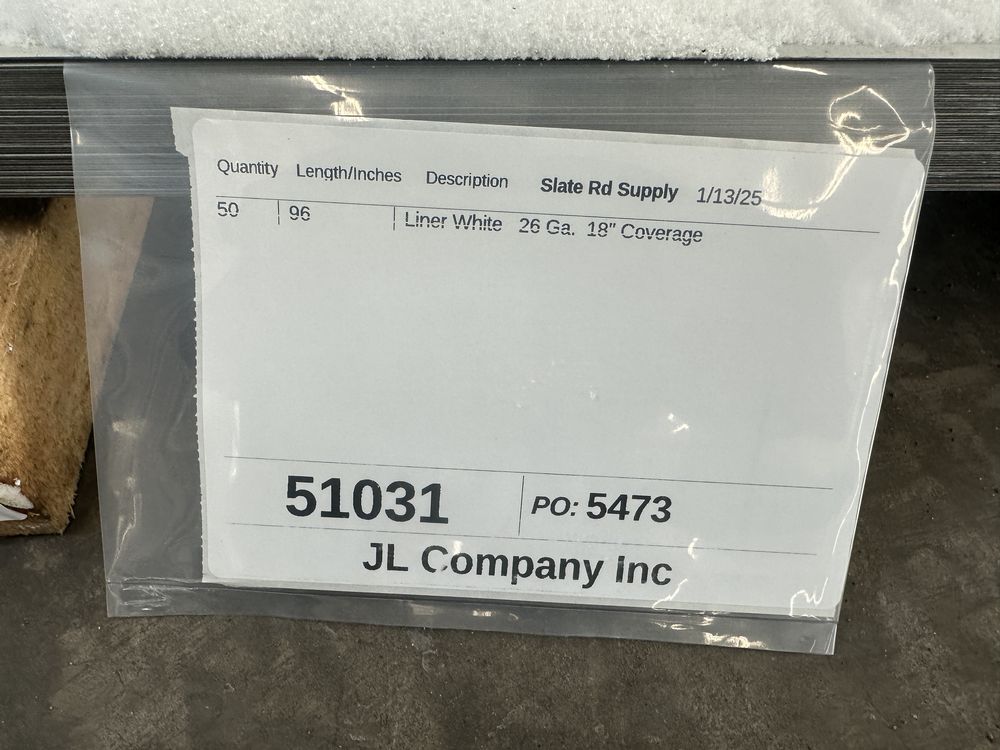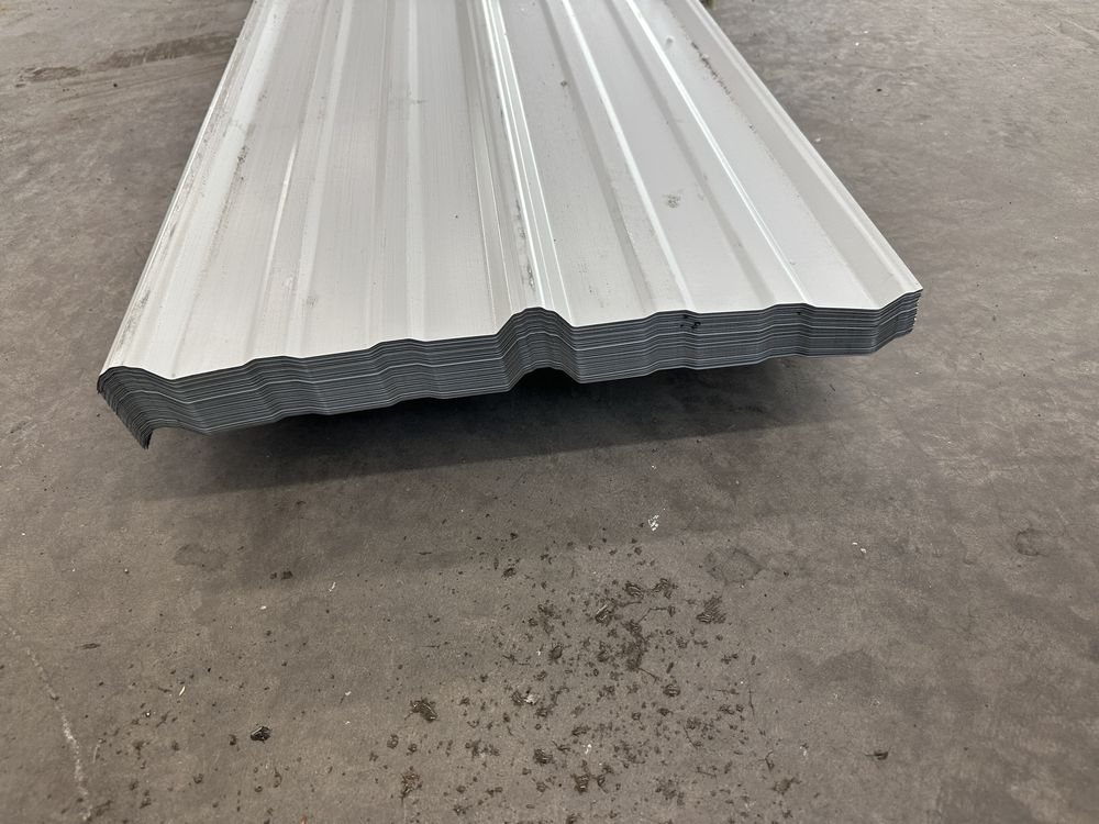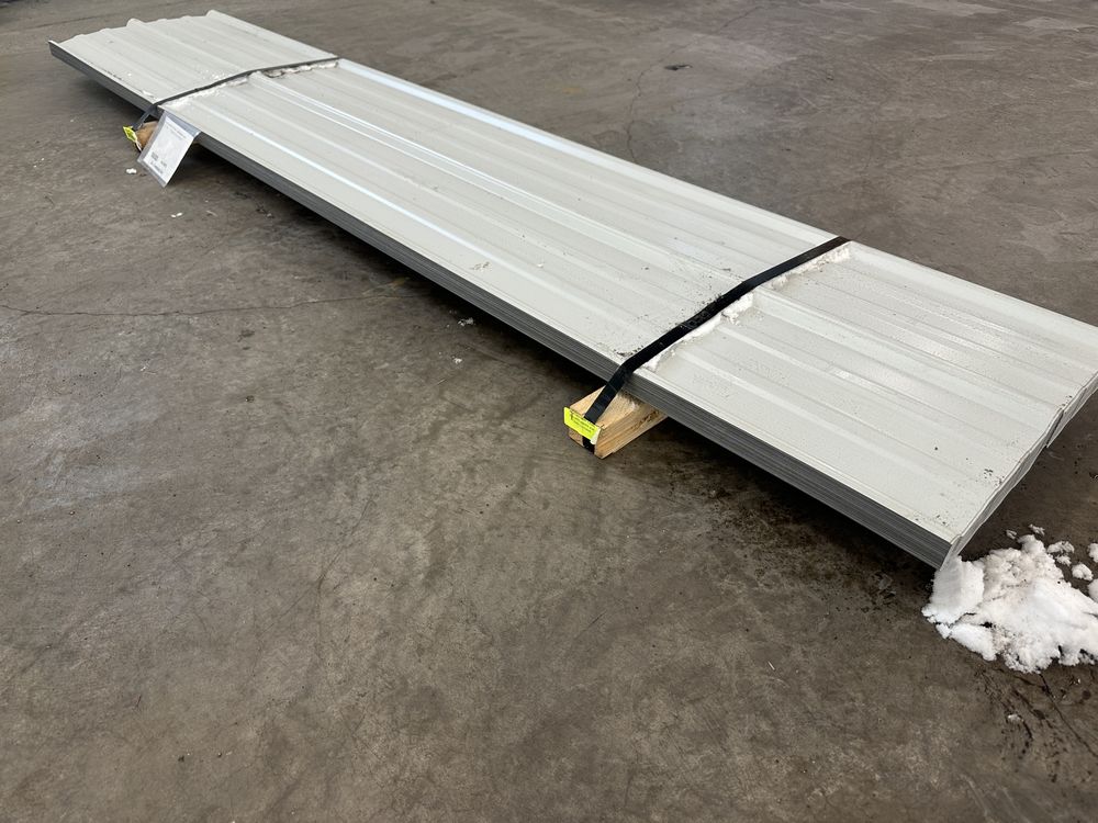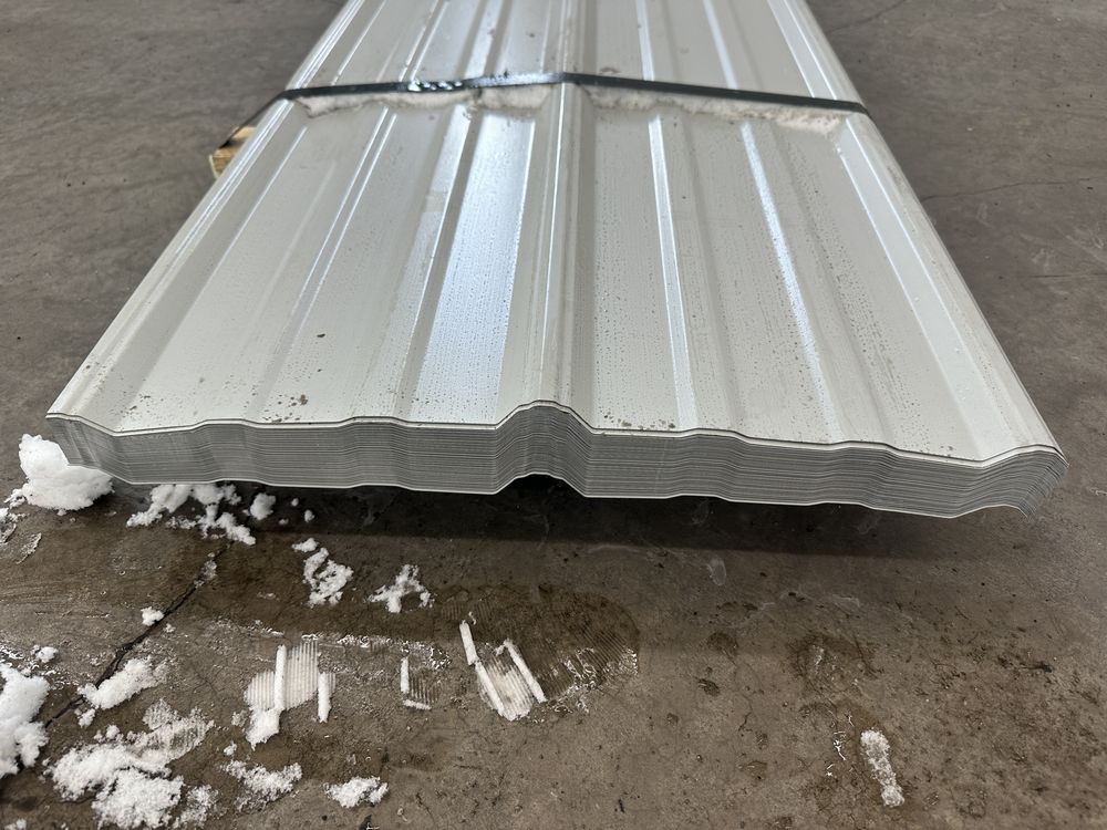Liner White Corrugated Metal Panel 18"x8'. 26 Gauge, 50 Pieces, Grade: B. Metal can be labeled as "B Grade" for many reasons. Some may include possible paint imperfections such as; off colors, light or heavy coating, dirt in paint, paint splash or blisters. They may contain steel imperfections such as; creases, wrinkles, wavy edges, dents, or general handling damage. When bidding on Grade B metal panels please don't assume that any two lots are the same. If you want to buy more than one (1) lot and need the same color please call us at 607-865-6951 to have us inspect the lots before you purchase. Weight: 640. Sold by: Linear Foot. Sold as: Price X Quantity. Inventory #: 2850-WHT 1.5xRL