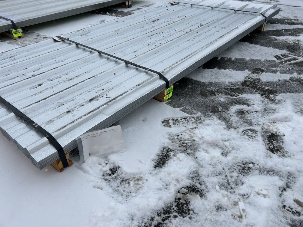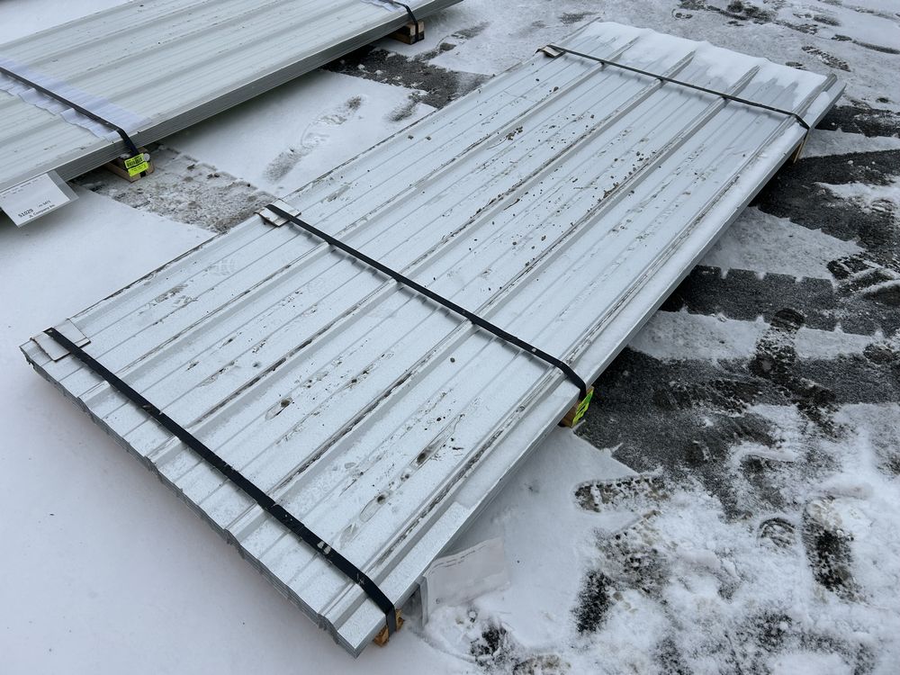 Galvalume Metal Panel 3'x8'. 26 Gauge, 53 Pieces, Grade: B. Metal can be labeled as "B Grade" for many reasons. Some may include possible paint imperfections such as; off colors, light or heavy coating, dirt in paint, paint splash or blisters. They may contain steel imperfections such as; creases, wrinkles, wavy edges, dents, or general handling damage. When bidding on Grade B metal panels please don't assume that any two lots are the same. If you want to buy more than one (1) lot and need the same color please call us at 607-865-6951 to have us inspect the lots before you purchase. Weight: 1187. Sold by: Linear Foot. Sold as: Price X Quantity. Inventory #: 2850-CG 3xRL