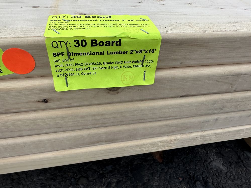 SPF Dimensional Lumber 2"x8"x16'. S4S, 640 Board Foot, Grade: PMO. Weight: 1120. Sold by: Board. Sold as: Price X Quantity. Inventory #: 2660-PMO 02x08x16