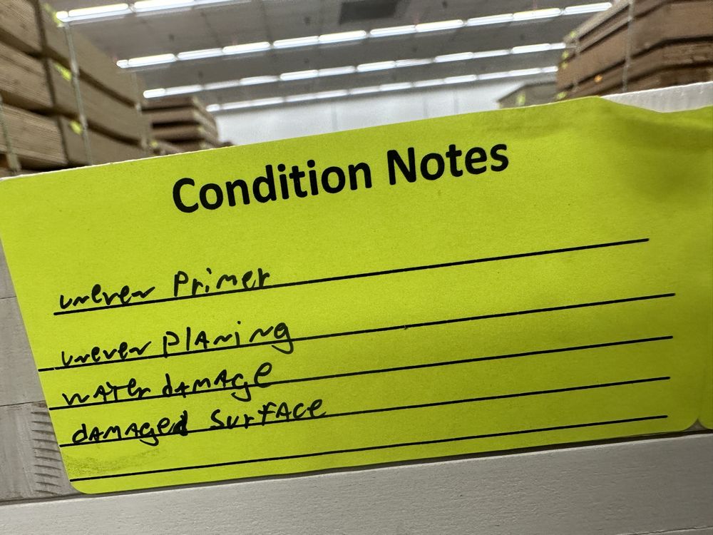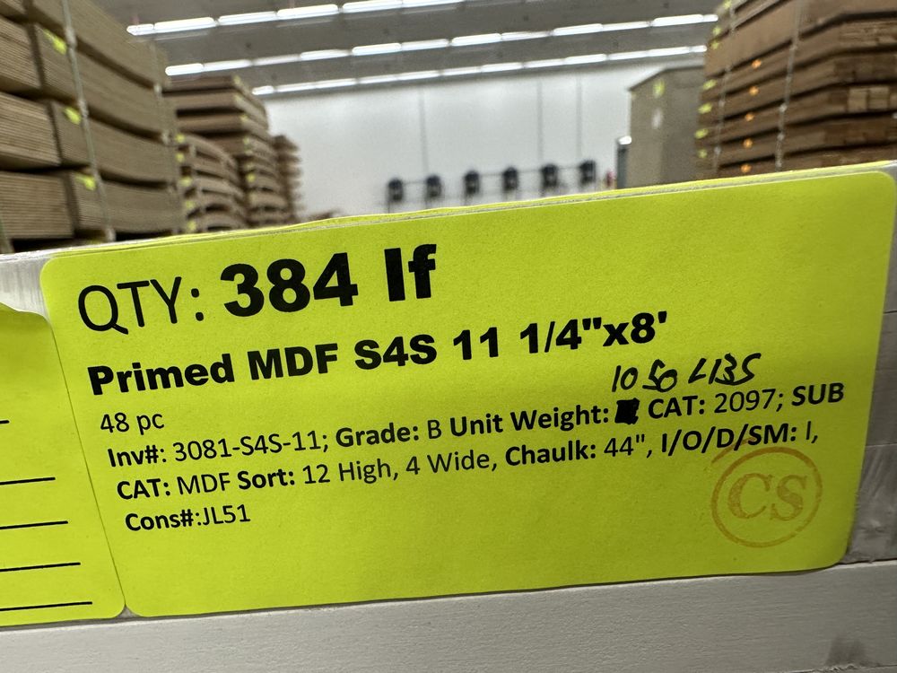 Primed MDF S4S 11 1/4"x8'. 48 Pieces, Grade: B *Uneven Panels/Primer, Water Damage, Damaged Surface, SEE PHOTOS*. Weight: 1050. Sold by: Linear Foot. Sold as: Price X Quantity. Inventory #: 3081-S4S-11