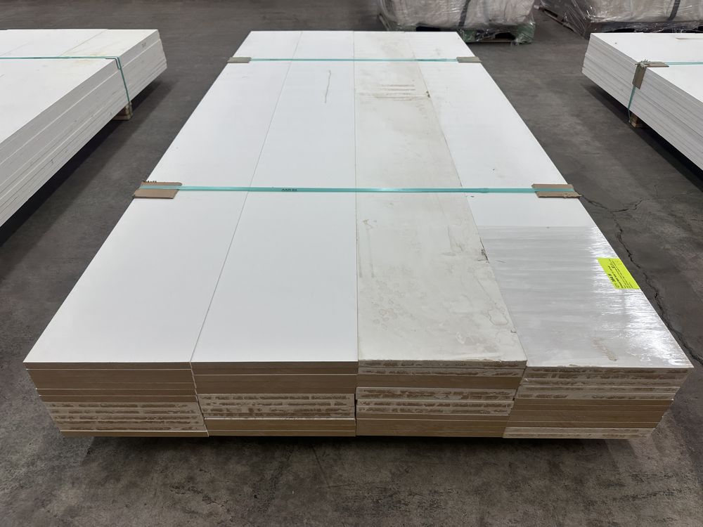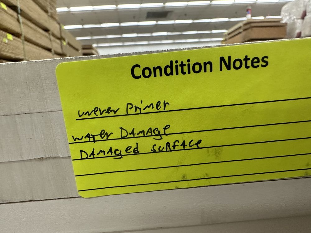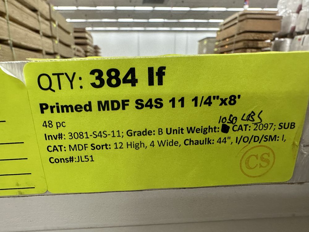 Primed MDF S4S 11 1/4"x8'. 48 Pieces, Grade: B *Uneven Primer, Water Damage, Damaged Surface, SEE PHOTOS*. Weight: 1050. Sold by: Linear Foot. Sold as: Price X Quantity. Inventory #: 3081-S4S-11