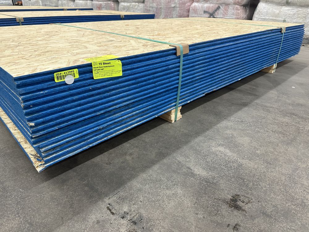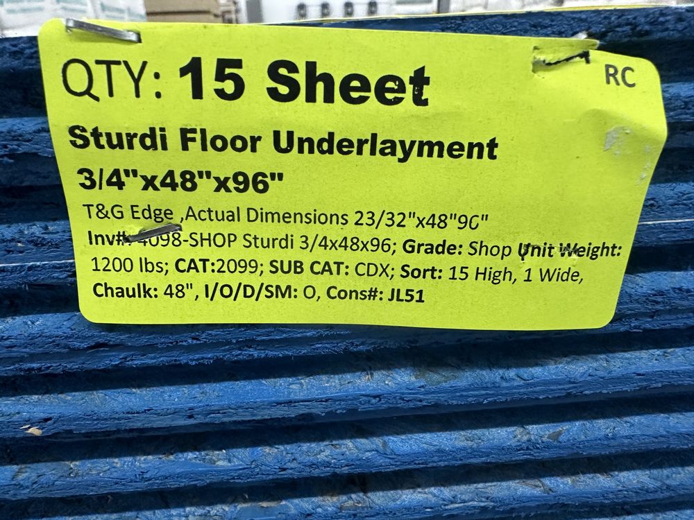 Sturdi Floor Underlayment 3/4"x48"x96". T&G Edge, Actual Dimensions 23/32"x48"x96" Grade: Shop . Weight: 1200. Sold by: Sheet. Sold as: Price X Quantity. Inventory #: 4098-SHOP Sturdi 3/4x48x96