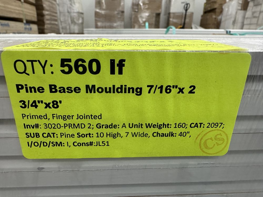 Pine Base Moulding 7/16"x2 3/4"x8'. Primed, Finger Jointed, Grade: A. . Weight: 160. Sold by: Linear Foot. Sold as: Price X Quantity. Inventory #: 3020-PRMD 2