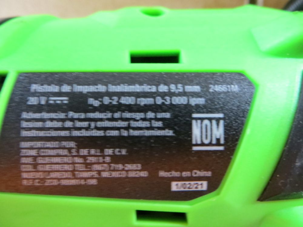 OEM Tools 20V Max Impact Driver (2x$). Model 24661M. Variable speed trigger for percision control, easy and convient speed control, electric brake to stop rotation when trigger is released and reduces work time for continuous jobs. Compact ergomatic design to reduce user fatigue, more versatility, fits into tight spaces, lightweight for easy overhead work. Forward/reverse switch for convient one hand operation. 3/8" square drive anvil, heat treated for durability, ball dent for secure socket retention and easy socket change. Weight: . Sold by: . Sold as: Price X Quantity. Inventory #: