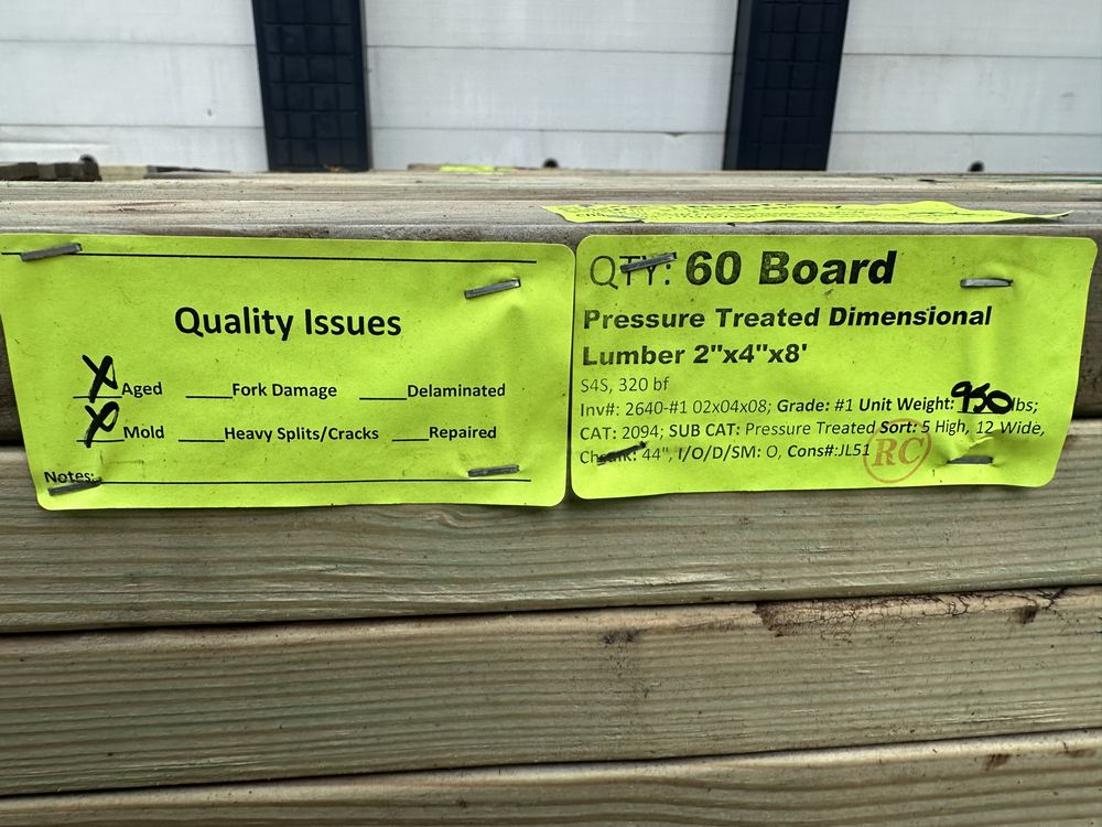 Pressure Treated Dimensional Lumber 2"x4"x8' **SEE DESCRIPTION**. S4S, 320 Board Foot, Grade: #1 **Aged, Mold, SEE PHOTOS**. Weight: 950. Sold by: Board. Sold as: Price X Quantity. Inventory #: 2640-#1 02x04x08