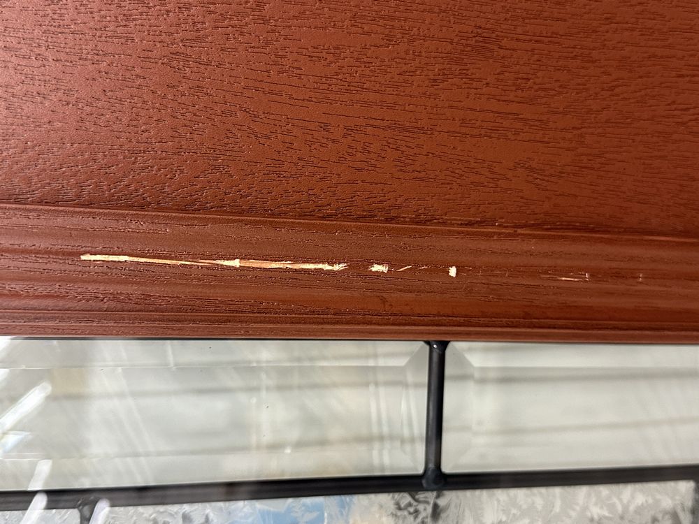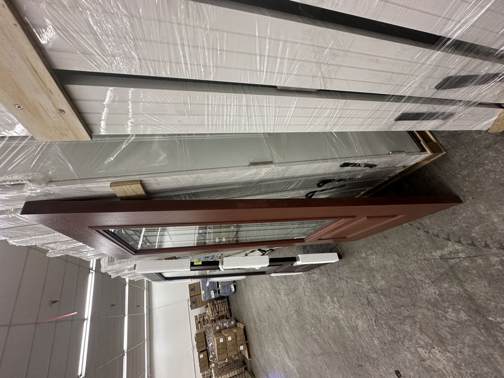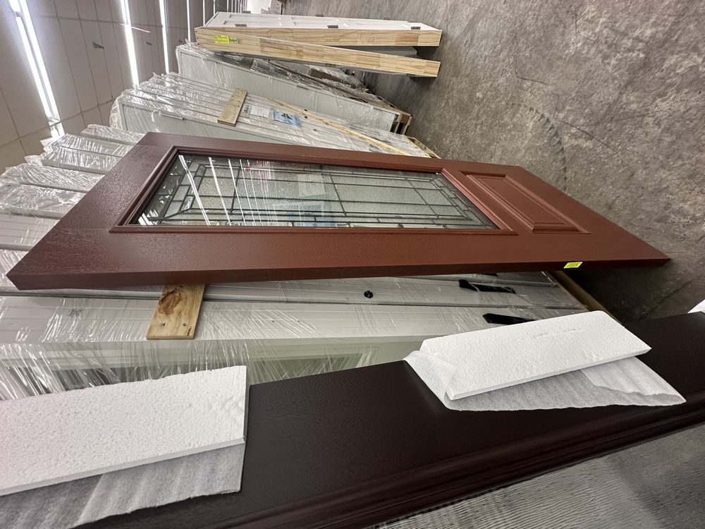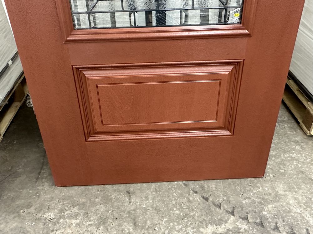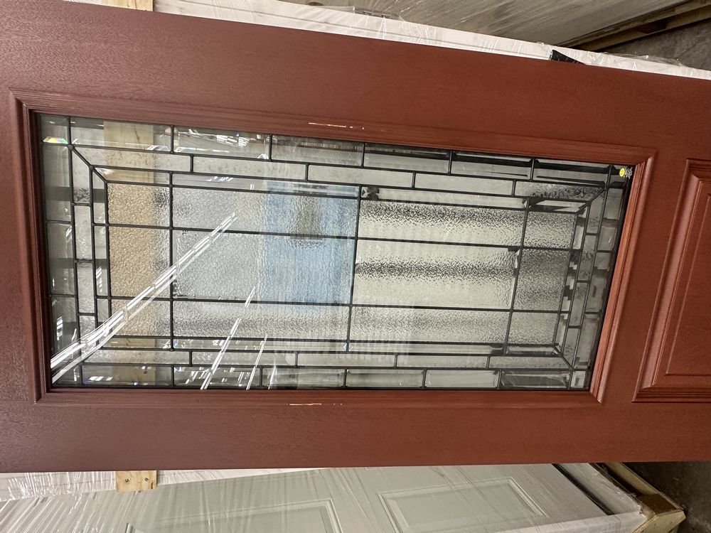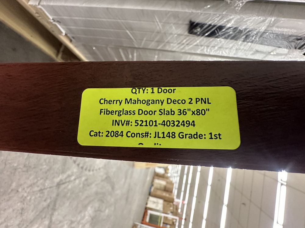 Cherry Mahogany Deco 2 PNL Fiberglass Door Slab 36"x80". Hollister Prefinished Belleville Masonite Spec Hardwood Edge, No Bore/No Hinge Prep, 22"x48", Antique Black Glass, Cherry Stain, Grade: 1st ** Scratch in The Finish, SEE PHOTOS**. Weight: 105. Sold by: Door. Sold as: Price X Quantity. Inventory #: 52101-4032494