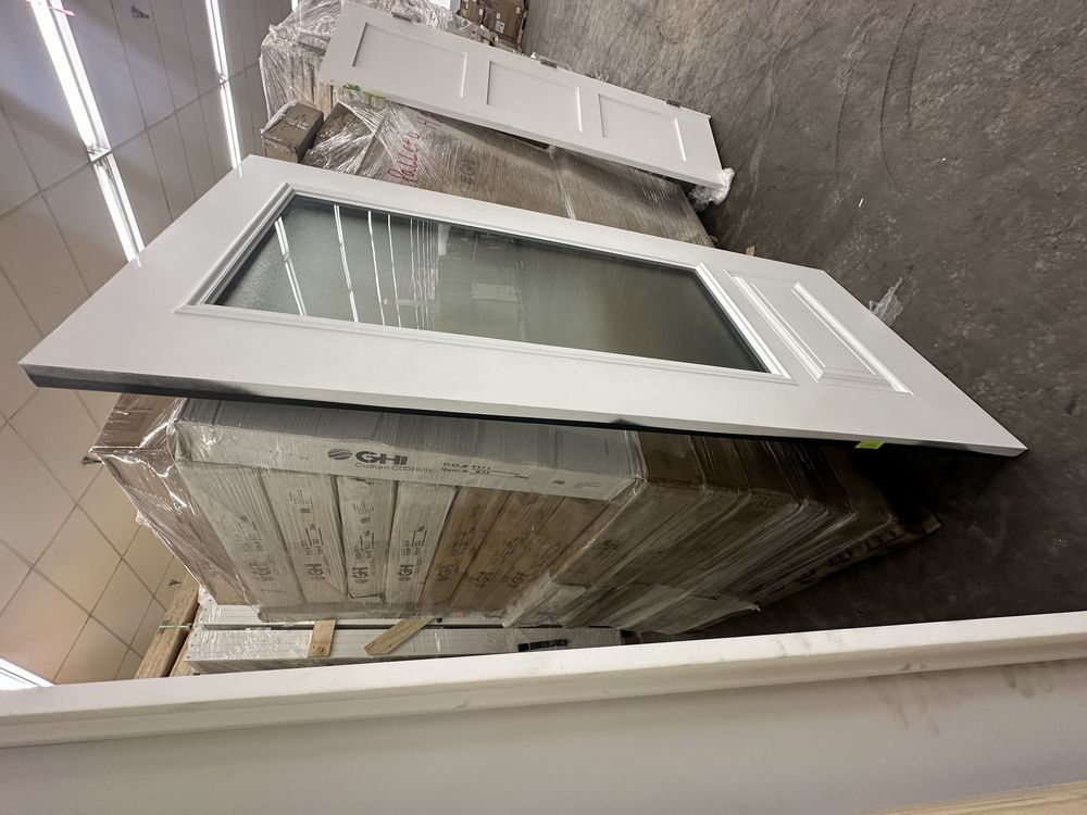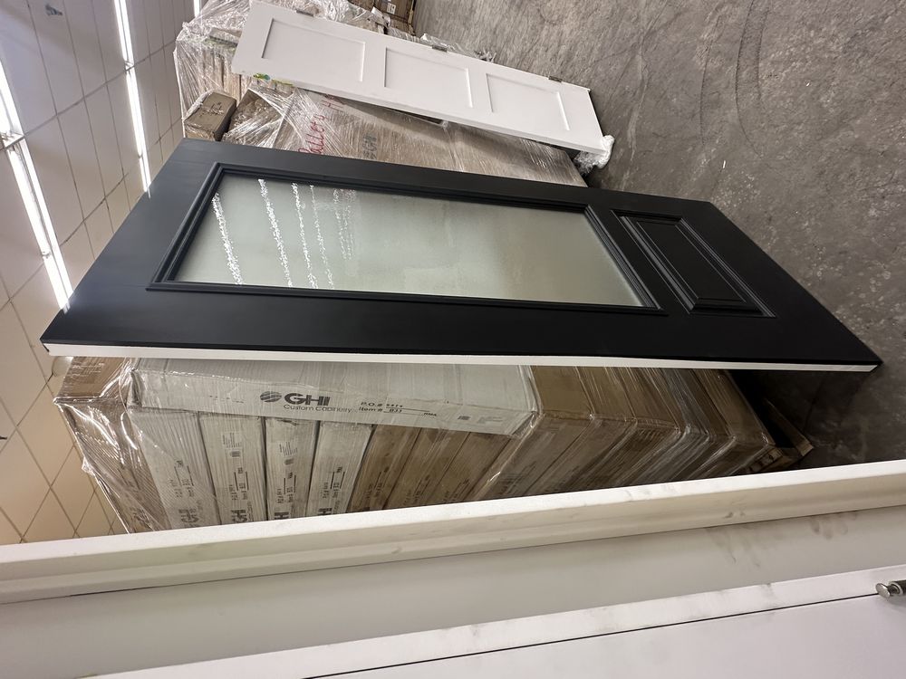 2 Tone Deco 2 PNL Fiberglass Door Slab 36"x80". Hollister Prefinished Belleville Masonite Spec Hardwood Edge, No Bore/No Hinge Prep, 22"x48" Chord Decorative Glass, Textured Front Glass, Grade: 1st. Weight: 105. Sold by: Door. Sold as: Price X Quantity. Inventory #: 52101-4032490