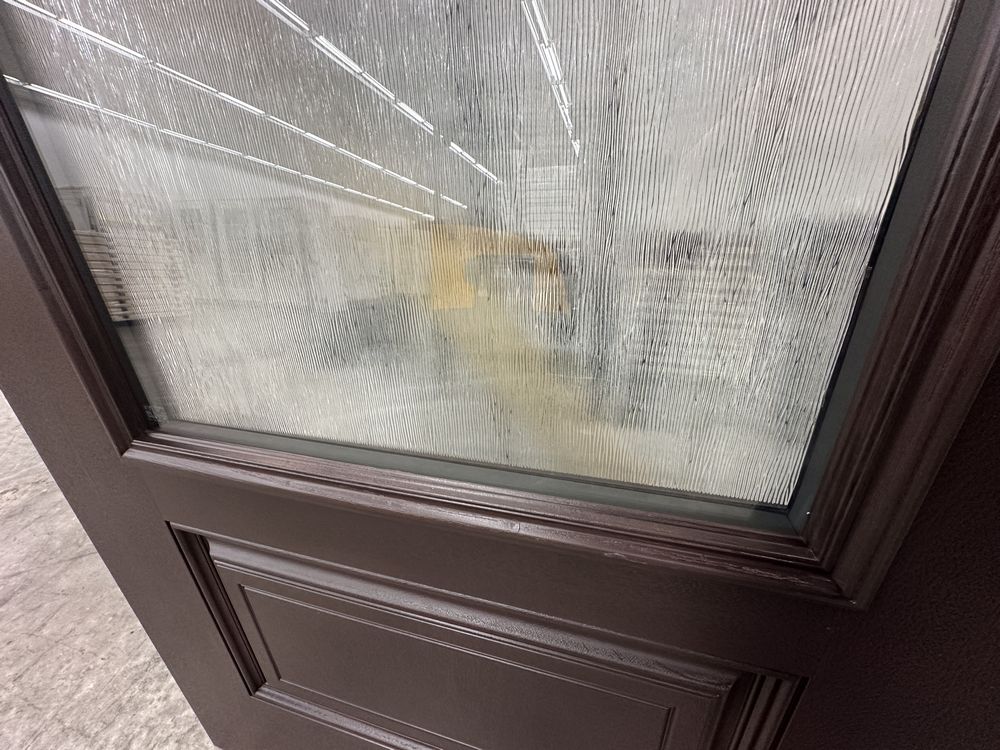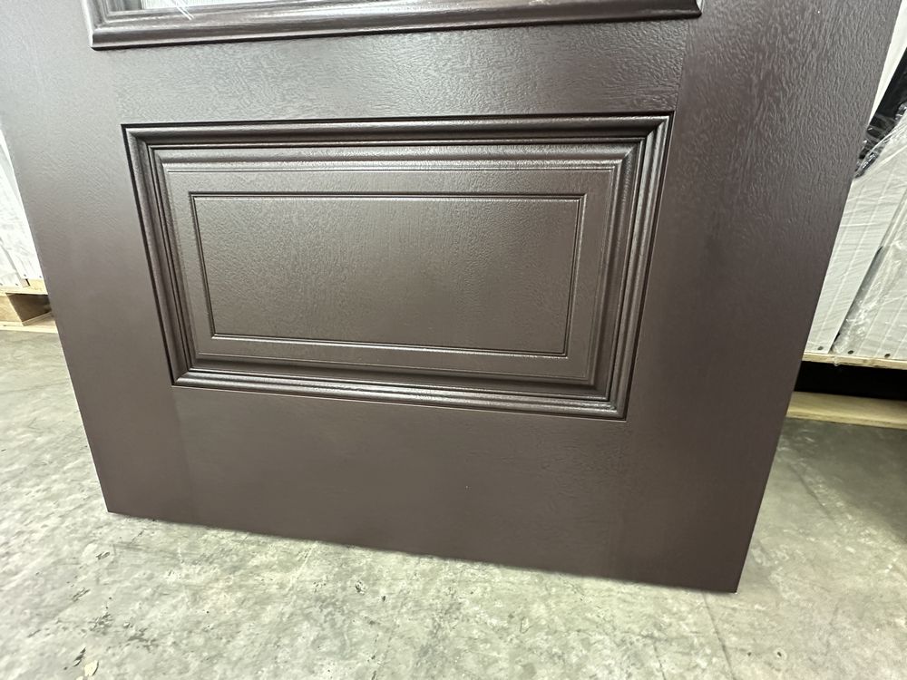 Merlot Mahogany Deco 2 PNL Fiberglass Door Slab 36"x80". Hollister Prefinished Belleville Masonite Spec Hardwood Edge, No Bore/No Hinge Prep, 22"x48" Chord Decorative Glass, Textured Front Glass, Grade: 1st. Weight: 105. Sold by: Door. Sold as: Price X Quantity. Inventory #: 52101-4032492