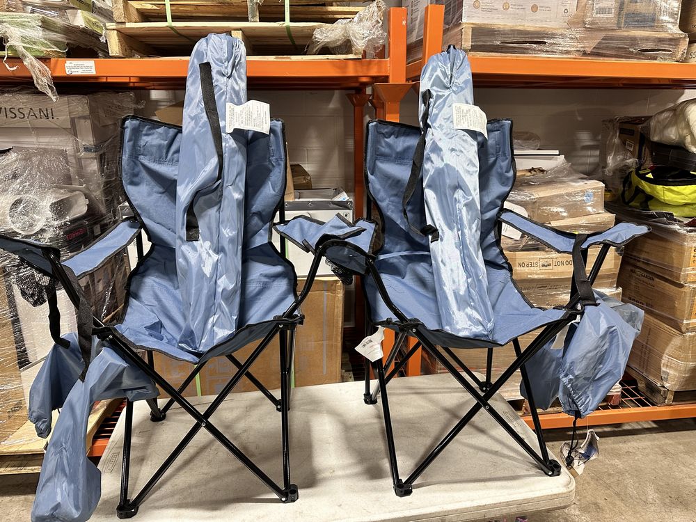 Basic Size Blue Metal Folding Chair (4). Powder-coated steel frame and polyester build for durability, 1 mesh cup holder for holding beverages, Folds into a compact bag for easy storage and portability. Weight: . Sold by: . Sold as: Price X Quantity. Inventory #: