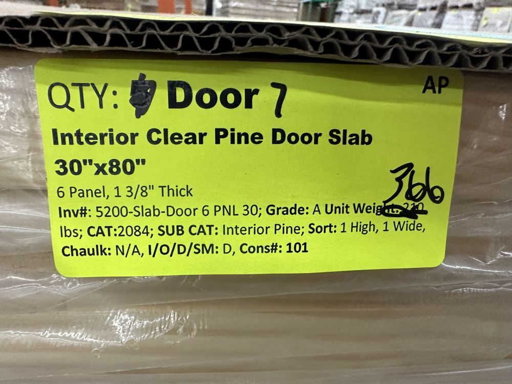 7 Pack Interior Clear Pine Door Slab 30"x80". 6 Panel, 1 3/8" Thick, Grade: A . Weight: 366. Sold by: Door. Sold as: Price X Quantity. Inventory #: 5200-Slab-Door 6 PNL 30