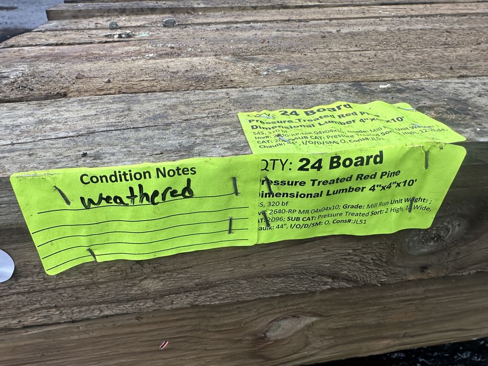 Pressure Treated Red Pine Dimensional Lumber 4"x4"x10'. S4S, 320 Board Foot, Grade: Mill Run *Weathered, Please See Photos*. Weight: x. Sold by: Board. Sold as: Price X Quantity. Inventory #: 2640-RP MR 04x04x10
