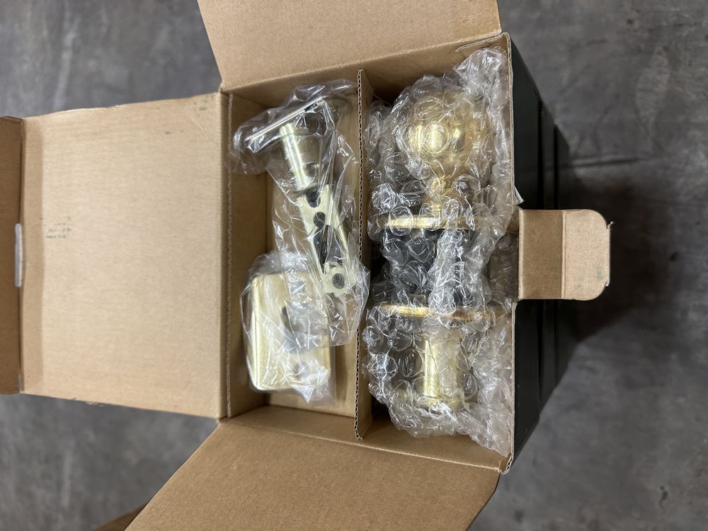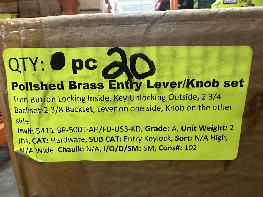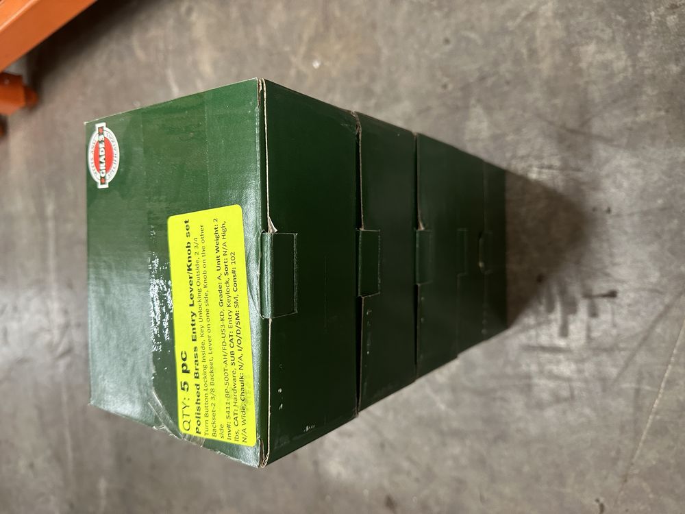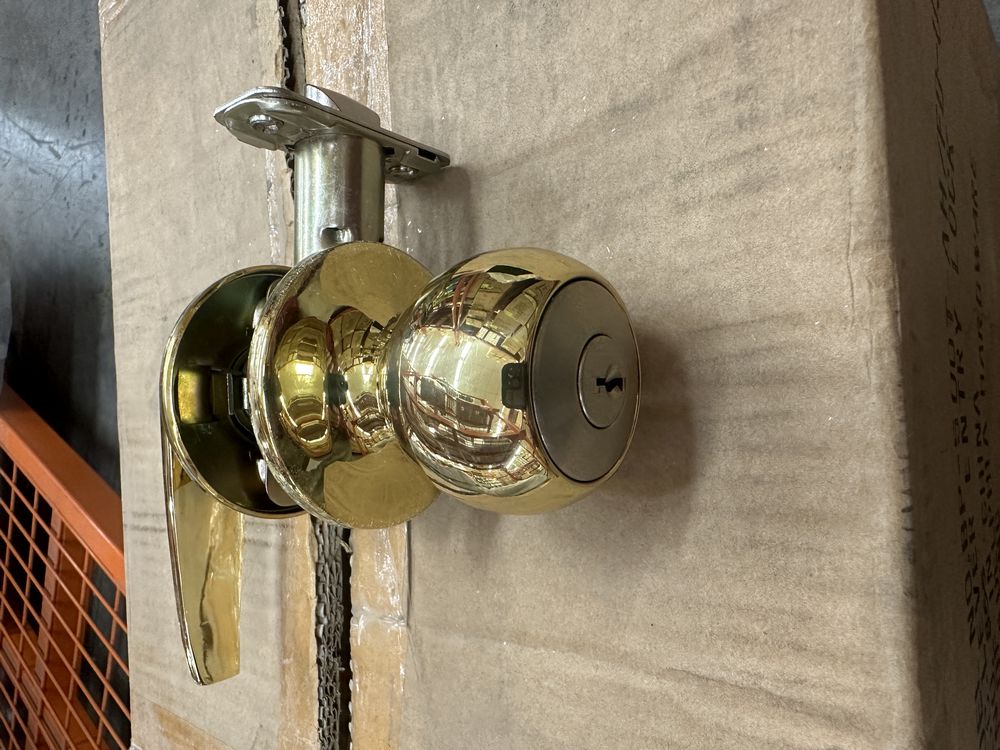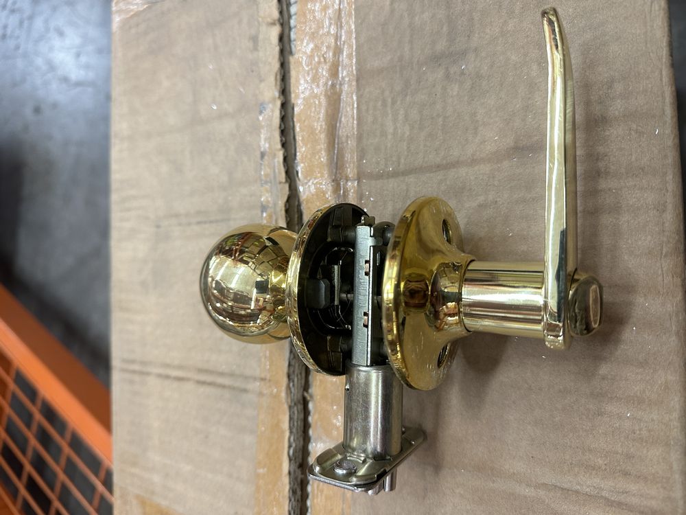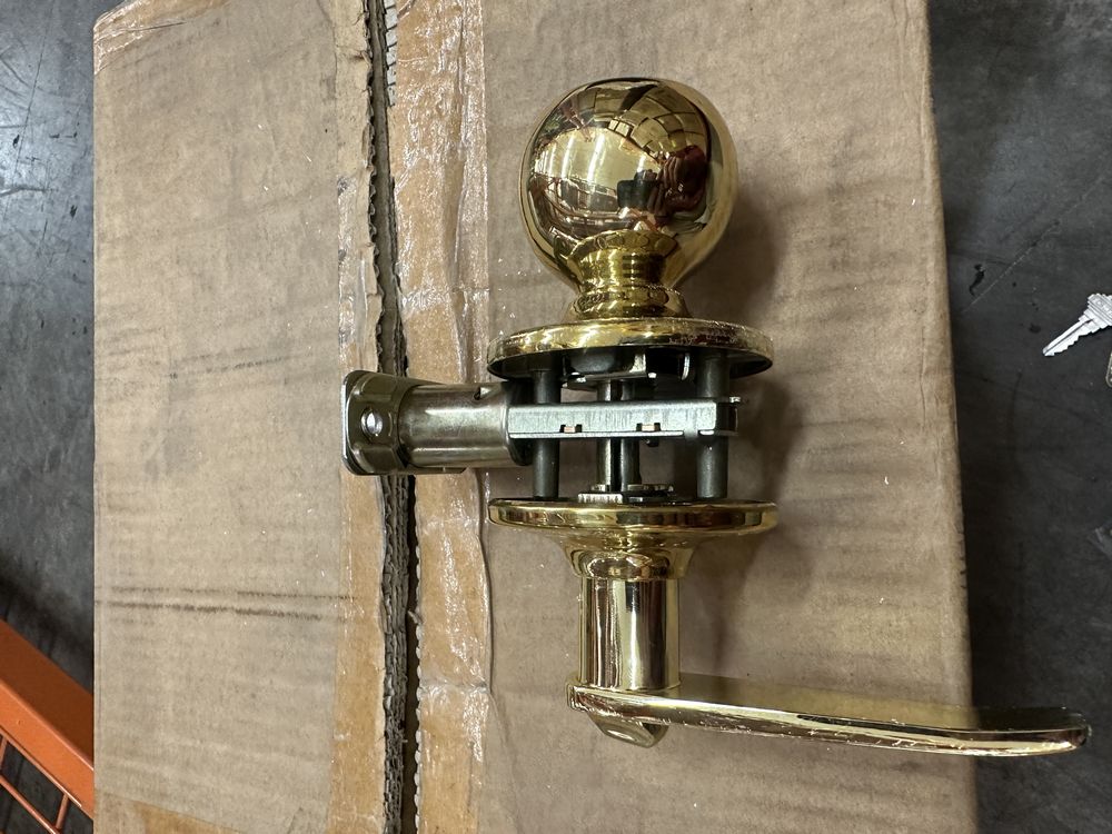 Polished Brass Entry Lever/Knob Set. Turn Button Locking Inside, Key Unlocking Outside, 2 3/4" - 2 3/8 Backset Lever On One Side, Knob On The Other Side, Grade: A. Weight: 2. Sold by: Piece. Sold as: Price X Quantity. Inventory #: 5411-BP-550T-AH/FD-US3-KD