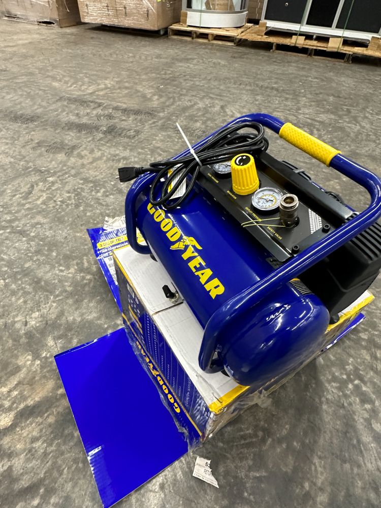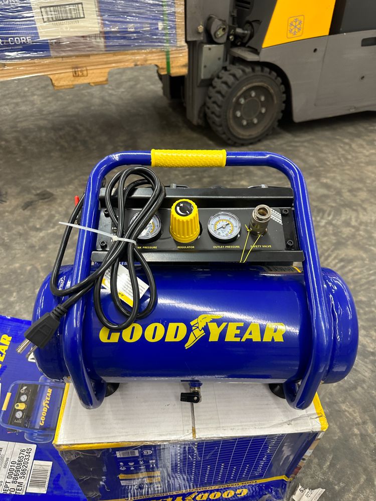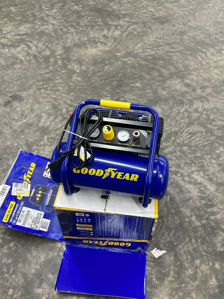 2 Gallon Oil Free Air Compressor. By Good Year, HP: 0.5, 1.2 SCFM @40 PSI, 0.8 SCFM @90 PSI, 58 dBA Quiet, Grade: New. Weight: 35. Sold by: Piece. Sold as: Price X Quantity. Inventory #: 4858-TAW-0508S