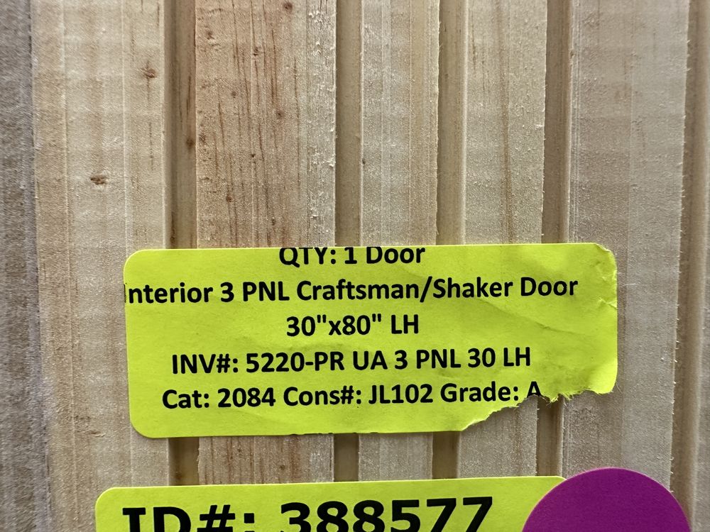 Interior 3 PNL Craftsman/Shaker Door 30"x80"LH. 3 PNL LH Grade: A. Weight: x. Sold by: Door. Sold as: Price X Quantity. Inventory #: 5220-PR UA 3 PNL 30 LH