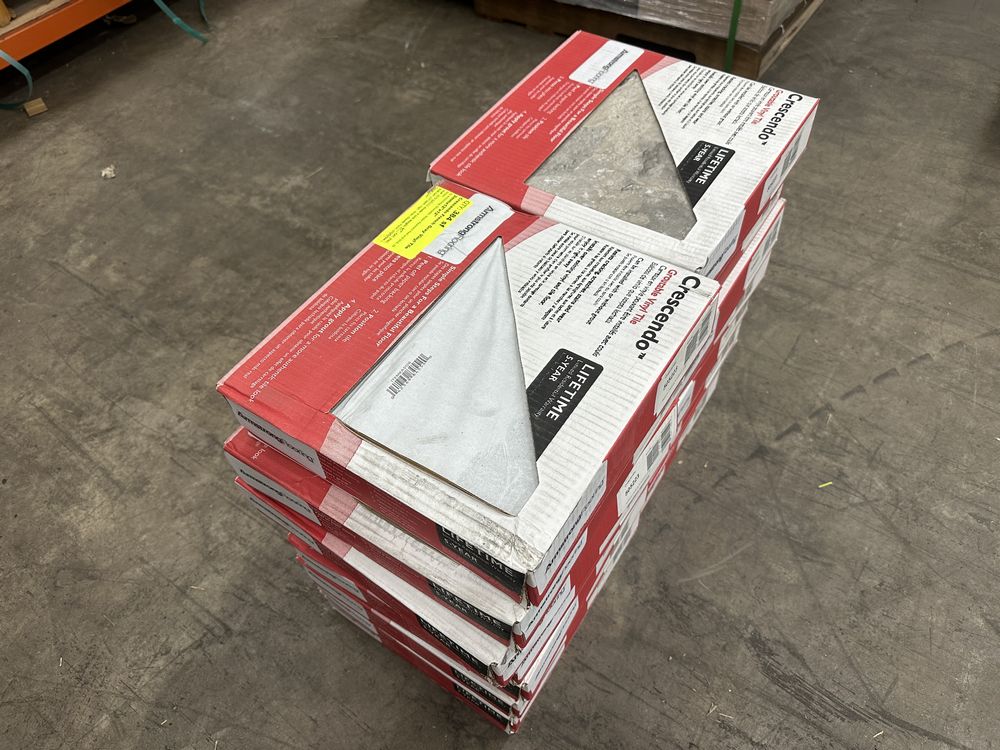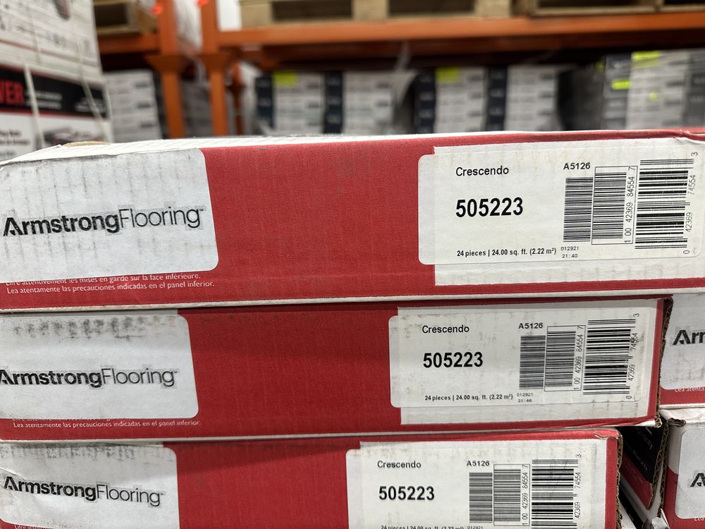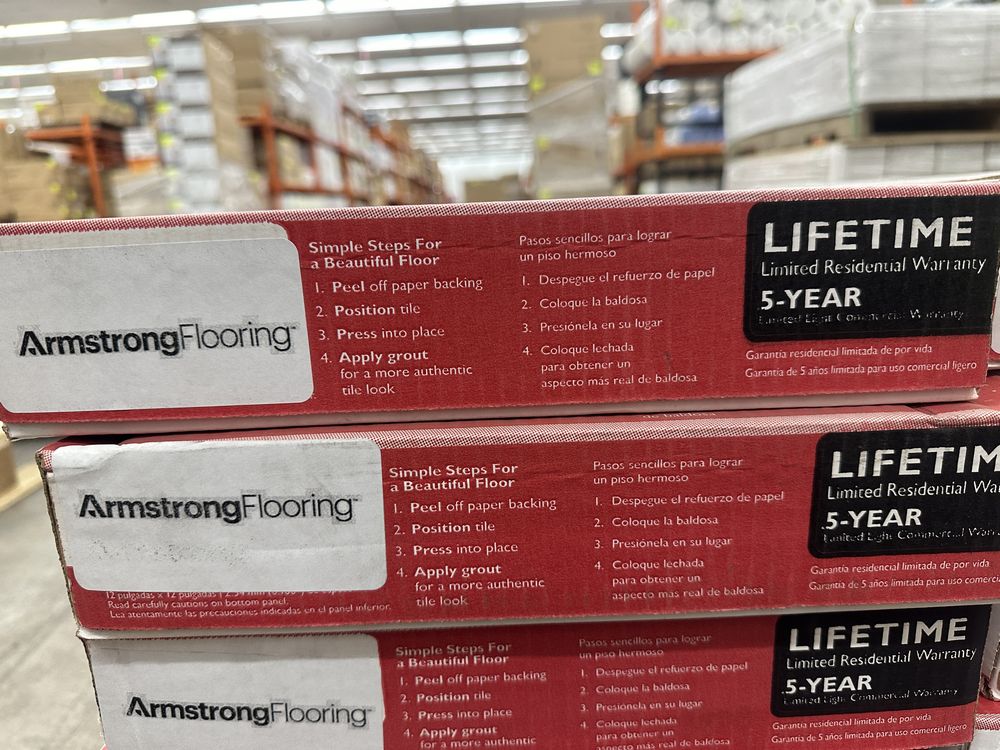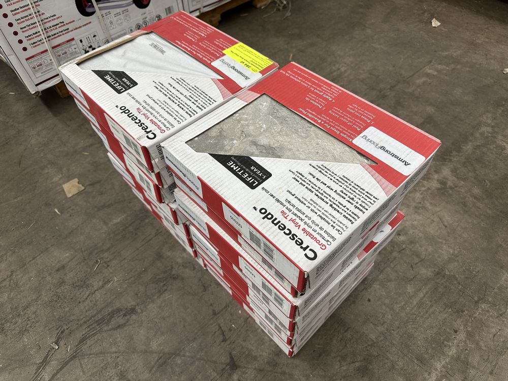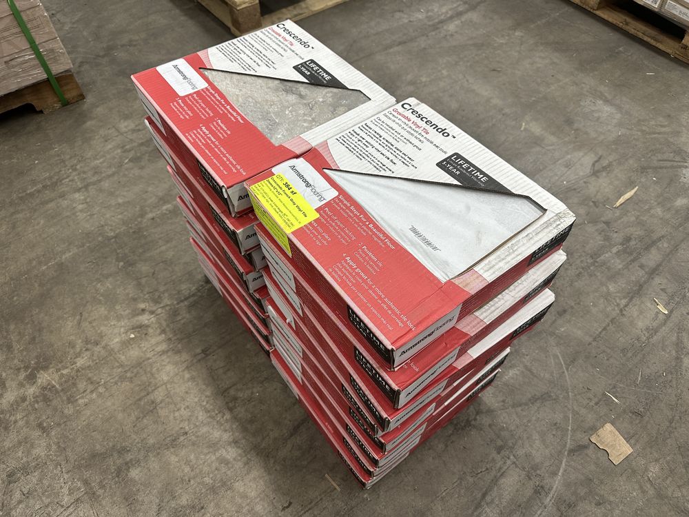 Crescendo French Gray Vinyl Tile 2mmx12"x12". By Armstrong, Groutable, Water Resistant Peel And Stick, 16 Boxes, 24 Pieces Per Box, 24 Square Foot Per Box, Grade: B. Weight: 450. Sold by: Square Foot. Sold as: Price X Quantity. Inventory #: 2079-505223