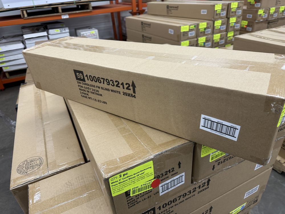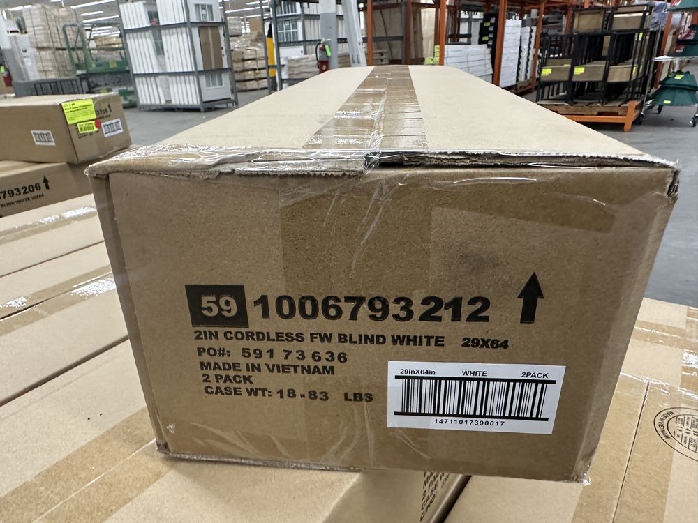 White 2" Cordless Room-Darkening Faux Window Blinds 29"x64". By Home Decorators, 2 piecs per box, Hardware included, Grade: A. Weight: 19. Sold by: Piece. Sold as: Price X Quantity. Inventory #: 61120-1006793212