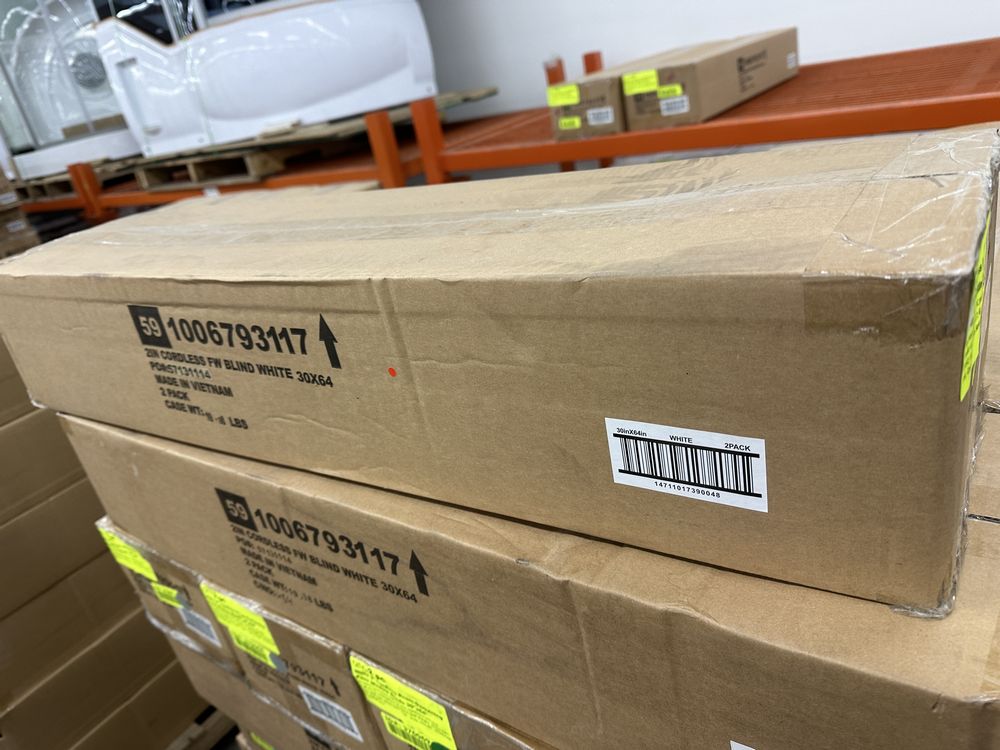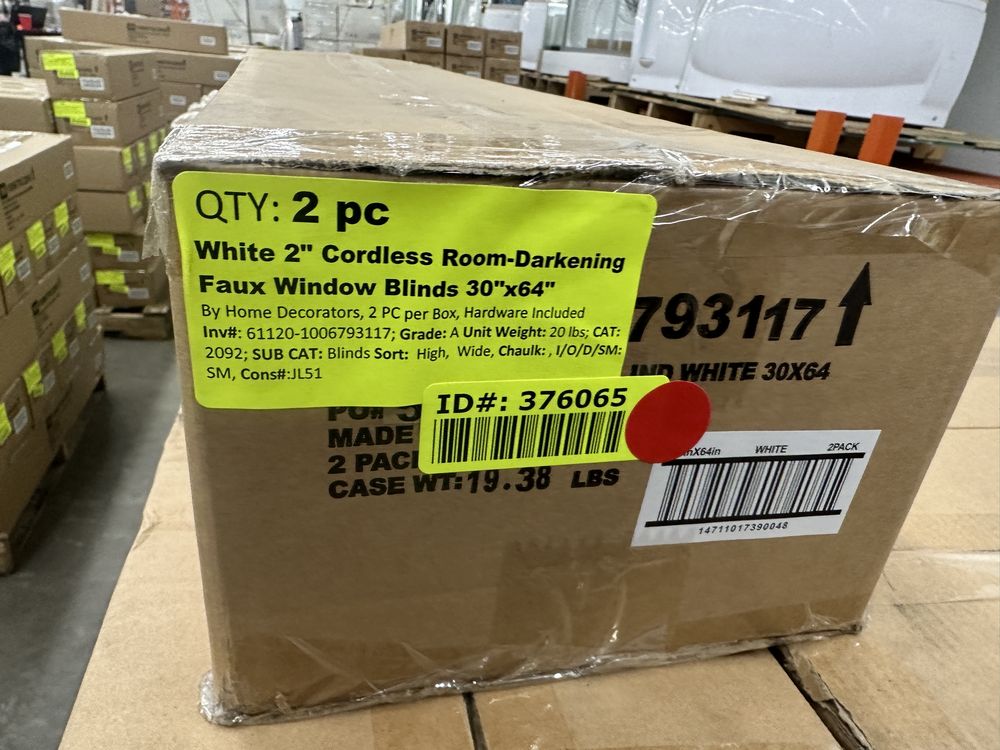 White 2" Cordless Room-Darkening Faux Window Blinds 30"x64". By Home Decorators 2 Piece Per Box, Hardware Included, Grade: A. Weight: 20. Sold by: Piece. Sold as: Price X Quantity. Inventory #: 61120-100679117
