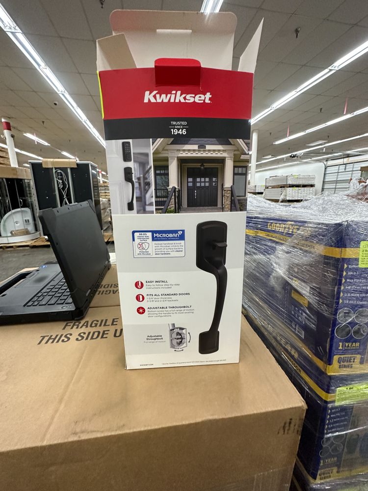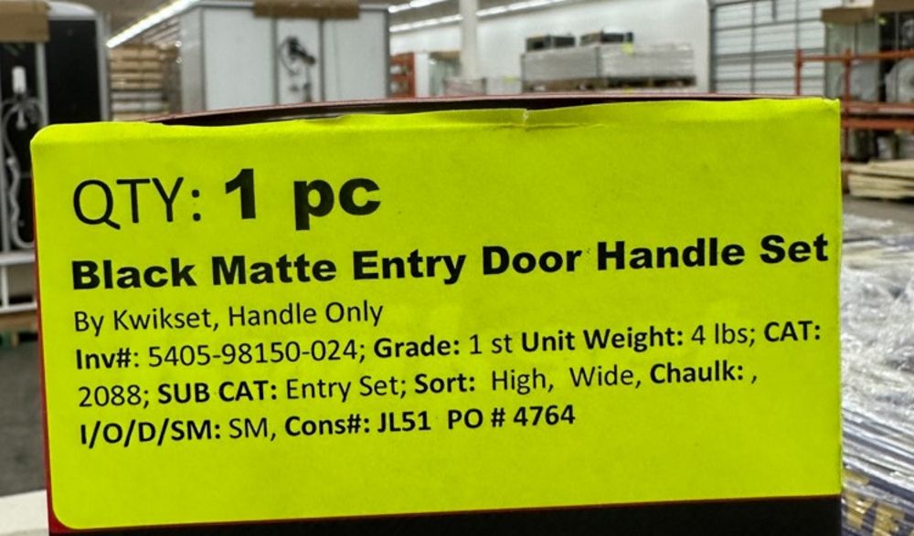 Black Matte Entry Door Handle set. By Kwikset, Handle Only, Grade: 1st. Weight: 4. Sold by: Piece. Sold as: Price X Quantity. Inventory #: 5405-98150-024