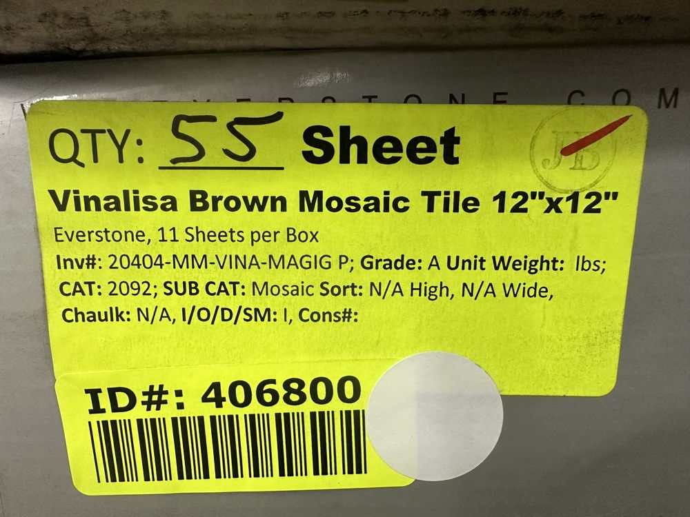 Vinalisa Brown Mosaic Tile 12"x12". Everstone, 11 sheets per box, Grade: A. Weight: X. Sold by: Sheet. Sold as: Price X Quantity. Inventory #: 20404-MM-VINA-MAGIG P