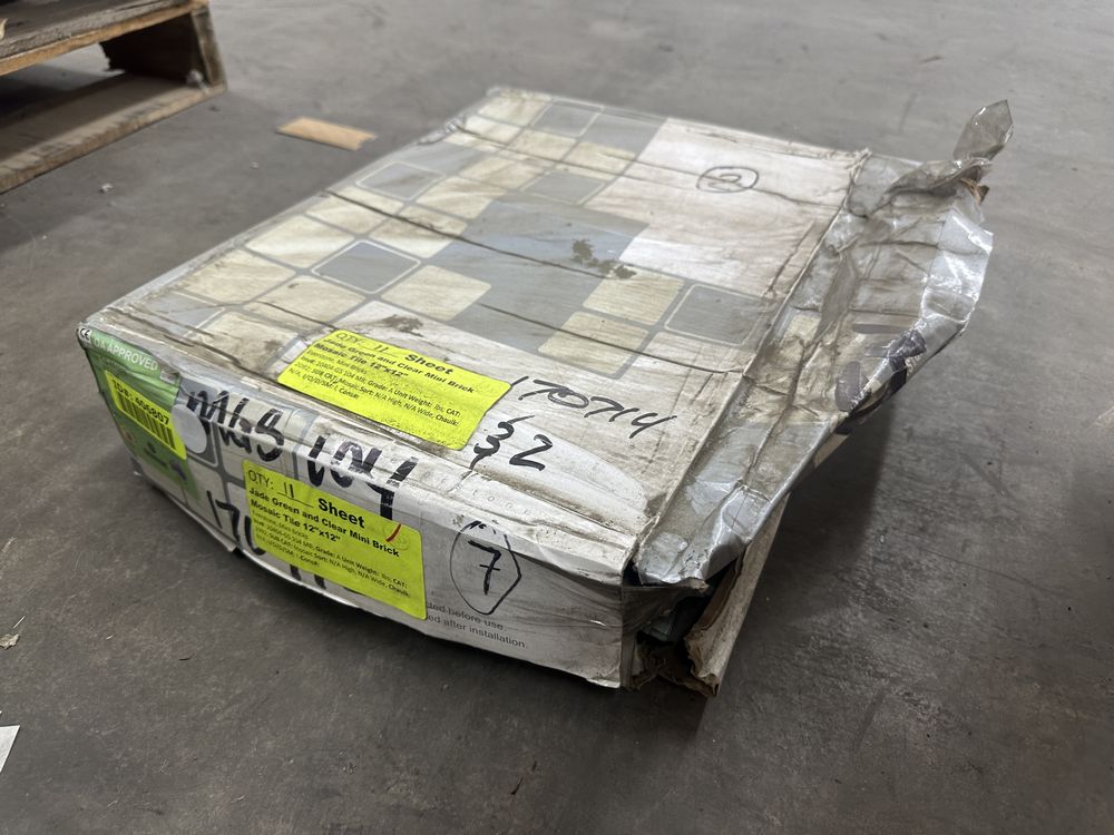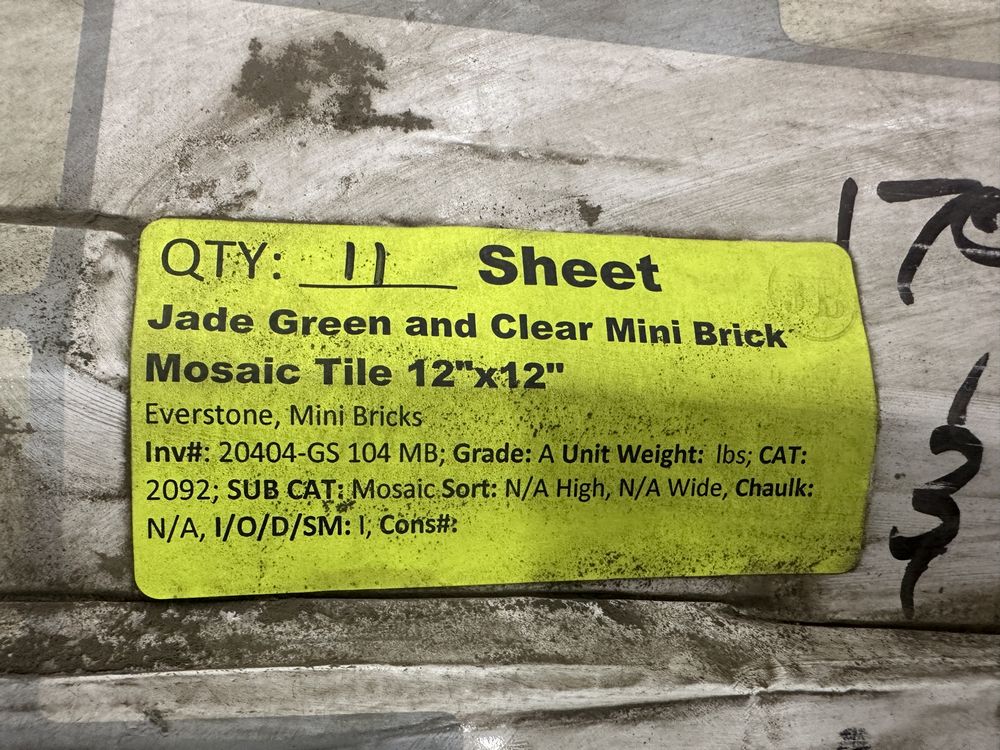 Jade Green and Clear Mini Brick Mosaic Tile 12"x12". Everstone, Mini Brick, Grade: A. Weight: X. Sold by: Sheet. Sold as: Price X Quantity. Inventory #: 20404-GS 104 MB