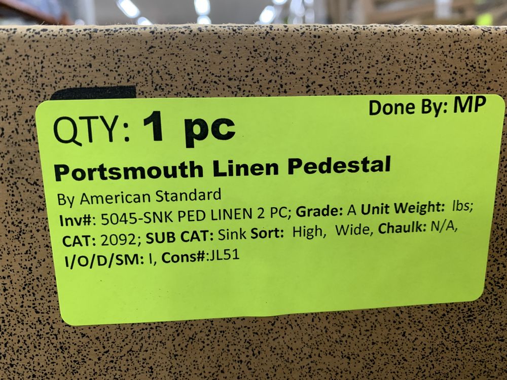 Portsmouth Linen Pedestal. By American Standard, Grade: A. Weight: x. Sold by: Piece. Sold as: Price X Quantity. Inventory #: 5045-SNK PED LINEN 2 PC
