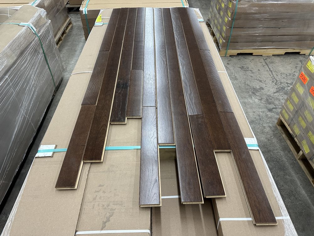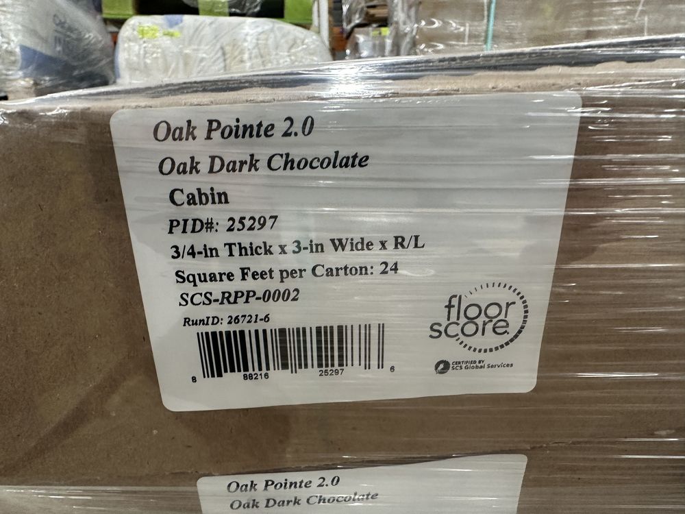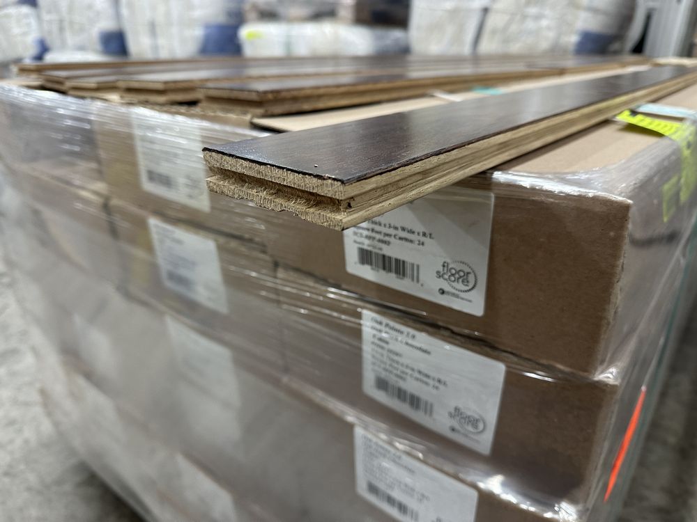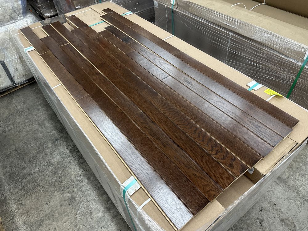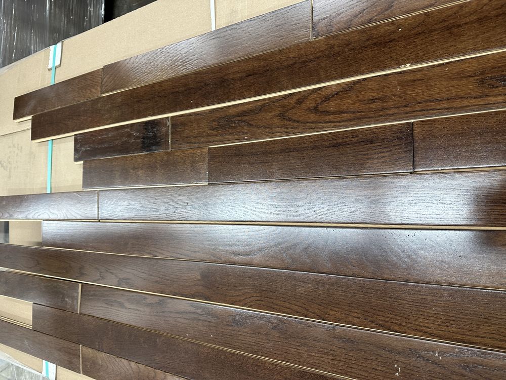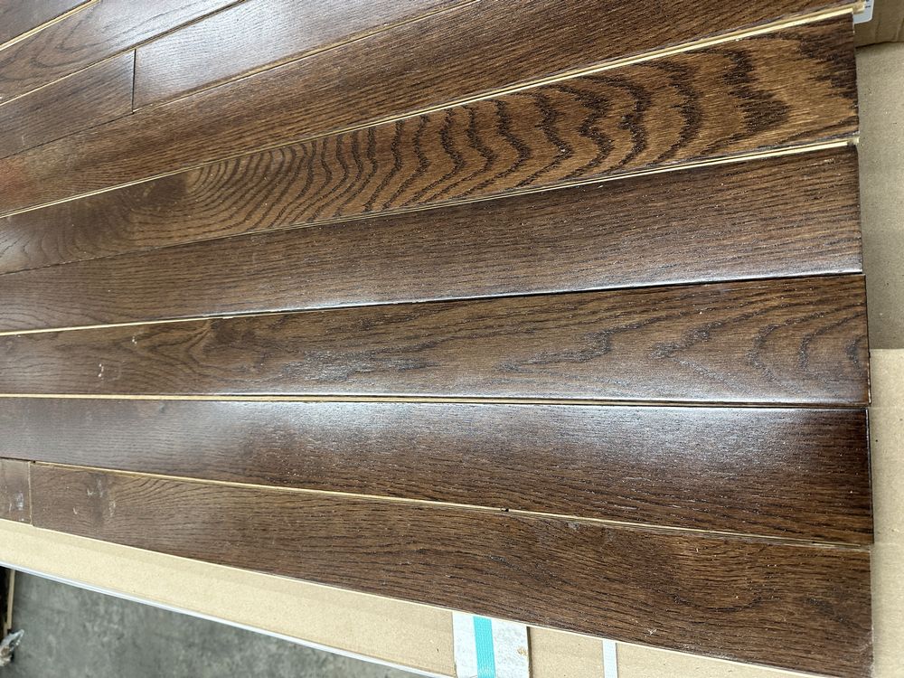 Oak Pointe 2.0 Oak Dark Chocolate Hardwood Flooring 3/4"x3"xRL. By Mullican Prefinished, 24 Square Foot Per Box, Grade: Cabin/Utility/Tavern Grade: This flooring product will have varying wood characteristics and colors to include streaks, deeper knots and burls, small splits, wormholes, and even marks during the milling process such as machine burns. It may also have a large variance in color and grain patterns. The boards are typically 10” to 30” with an average board length of 16”. It is usually packaged in mini bundles of 18-20 sf per bundle. It is ok for 5” wide to be heavier in shorter pieces. Cabin grade is a stable, installable product but please account up to 10%-20% waste. Weight: 2000. Sold by: Square Foot. Sold as: Price X Quantity. Inventory #: 2132-25297