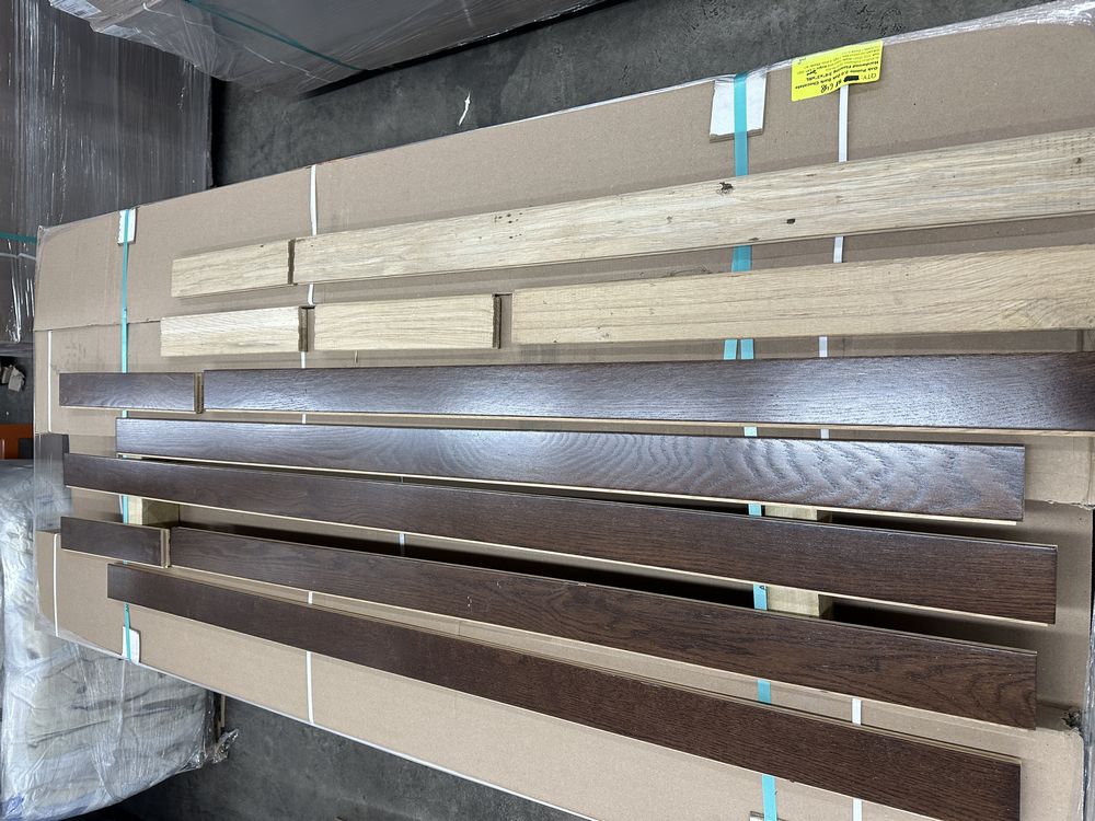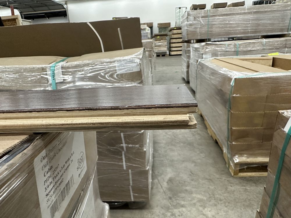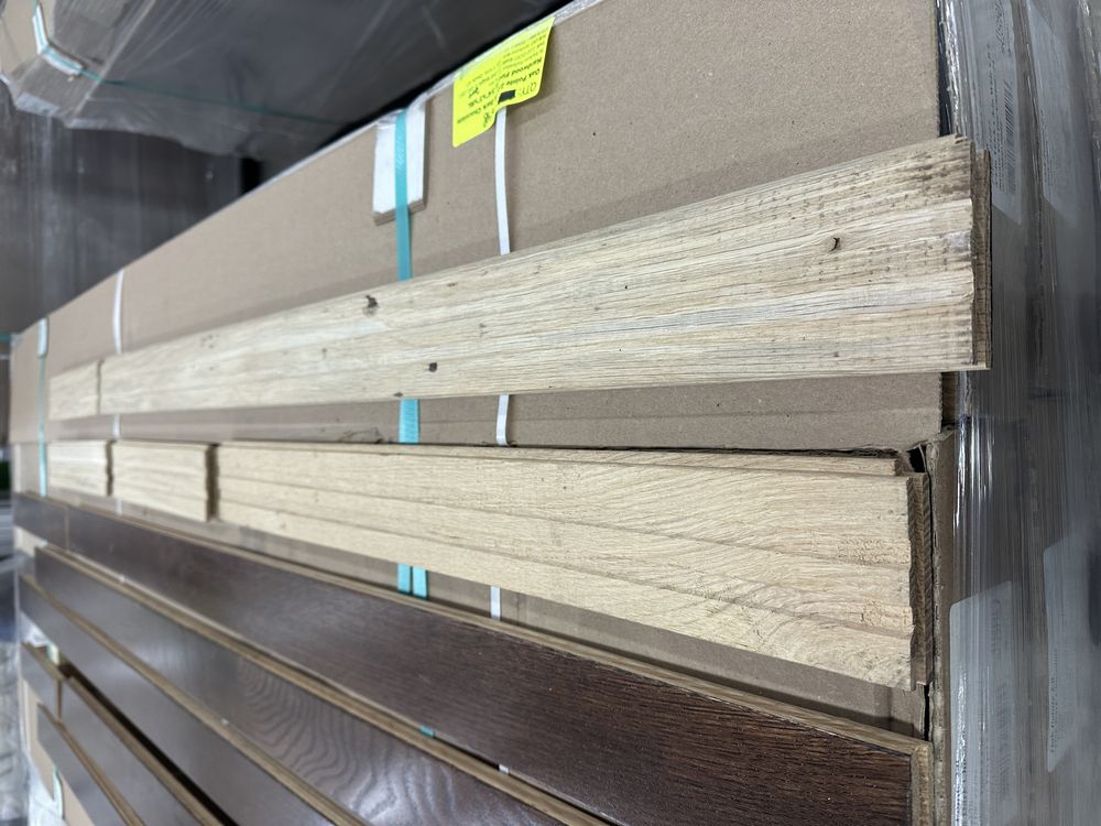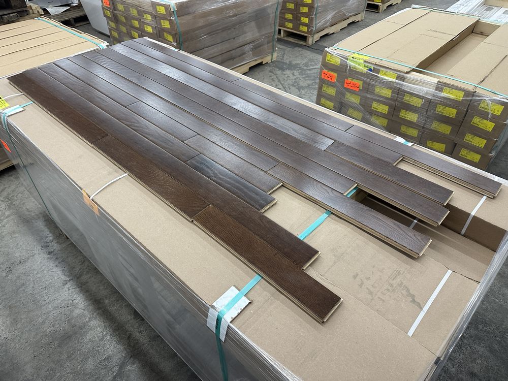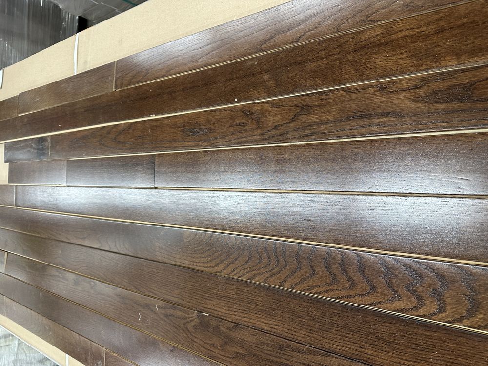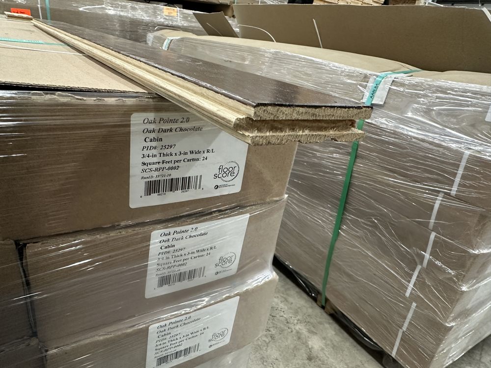 Oak Pointe 2.0 Oak Dark Chocolate Hardwood Flooring 3/4"x3"xRL. By Mullican Prefinished, 24 Square Foot Per Box, Grade: Cabin/Utility/Tavern Grade: This flooring product will have varying wood characteristics and colors to include streaks, deeper knots and burls, small splits, wormholes, and even marks during the milling process such as machine burns. It may also have a large variance in color and grain patterns. The boards are typically 10” to 30” with an average board length of 16”. It is usually packaged in mini bundles of 18-20 sf per bundle. It is ok for 5” wide to be heavier in shorter pieces. Cabin grade is a stable, installable product but please account up to 10%-20% waste. Weight: 2000. Sold by: Square Foot. Sold as: Price X Quantity. Inventory #: 2132-25297