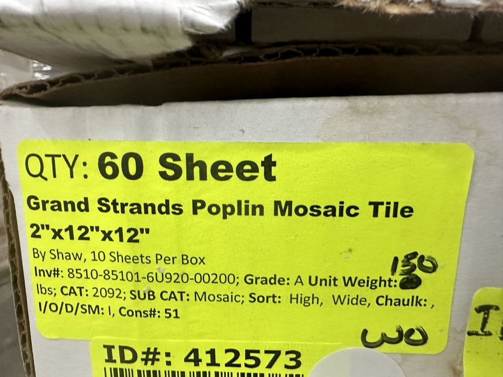 Grand Strands Poplin Mosaic Tile 2"x12"x12". By Shaw, 10 sheets per box, 6 boxes total, Grade: A. Weight: X. Sold by: Sheet. Sold as: Price X Quantity. Inventory #: 8510-85101-6U920-00200