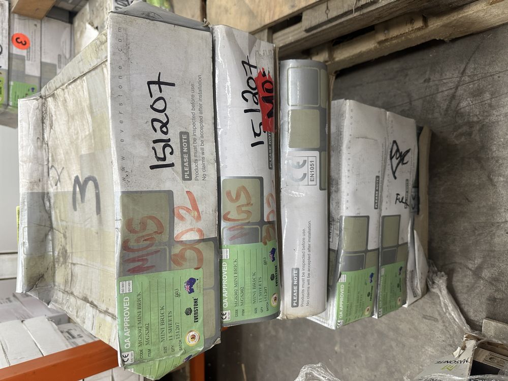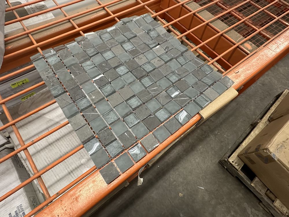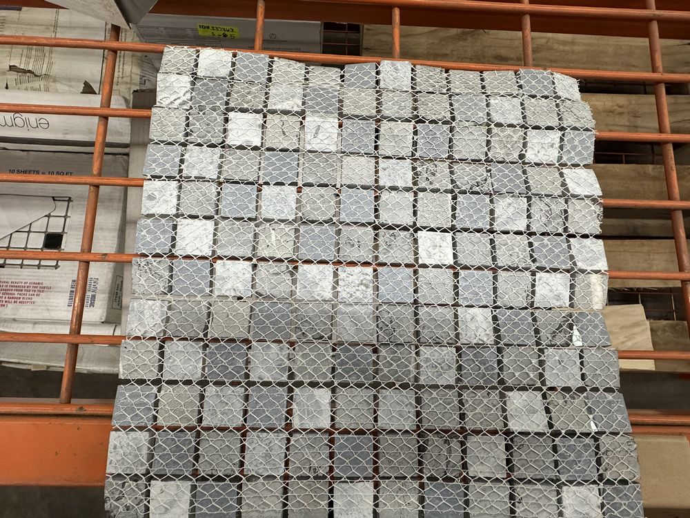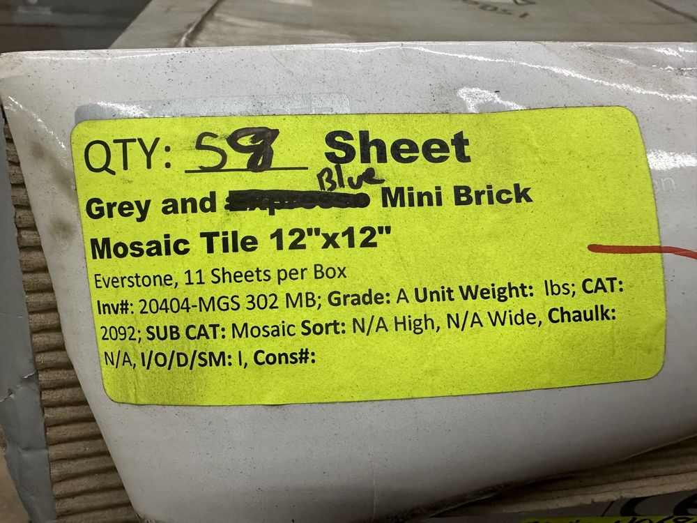 Grey and Blue Mosiac Tile 12"x12". Everstone, 1 box with 3 sheets, 5 boxes with 11 sheets, Grade: A. Weight: X. Sold by: Sheet. Sold as: Price X Quantity. Inventory #: 20404-MGS 302 MB