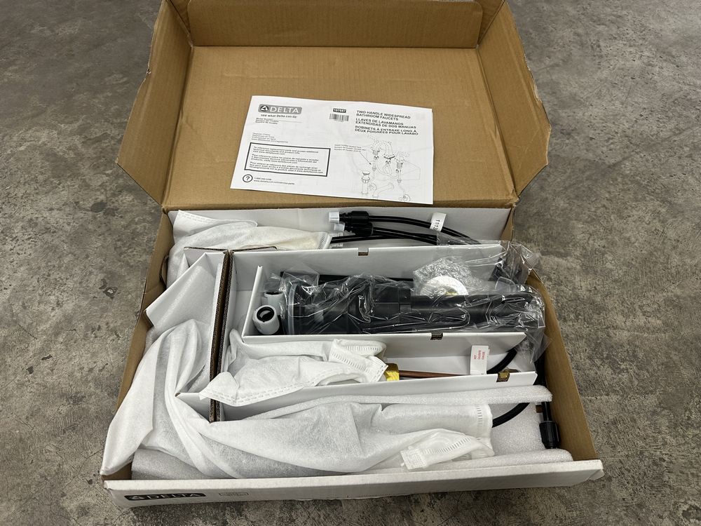 Widespread Bathroom Faucet 2L. Matt Black Finish. Made by Delta. Arvo Collection. 3-Hole 6-16" Installation. Overall Height 6-5/16" 1.2GPM Max Grade: A. Weight: x. Sold by: Piece. Sold as: Price X Quantity. Inventory #: 5015-35840LF-BL