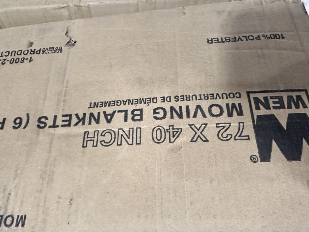 WEN 272406 72-Inch by 40-Inch Heavy Duty Padded Moving Blankets (6). This 6 pack is perfect for packing, transporting, and protecting your valuable and delicate items and surfaces. This heavy-duty non-woven blanket features 100% polyester designed with a double-stitched seam to provide extra strength and flexibility during each move. Guard your furniture from dirt and moisture and your floor from your furniture. The padded interior prevents scratches, scuffs, nicks, dings, cracks, and other unwanted damage during transportation. Weight: . Sold by: . Sold as: Price X Quantity. Inventory #: