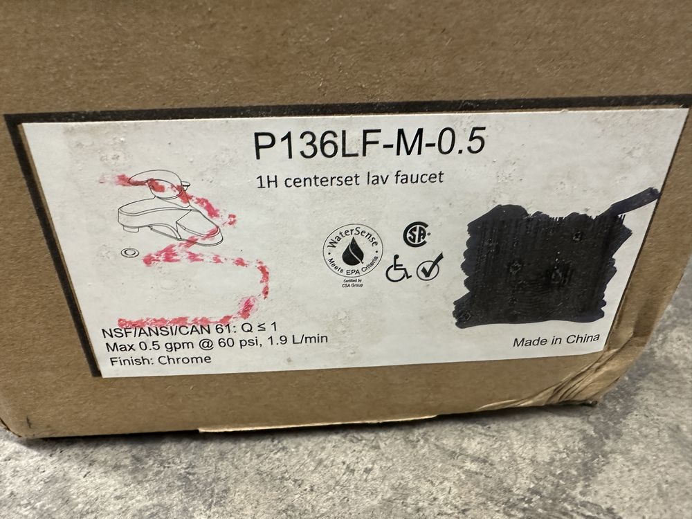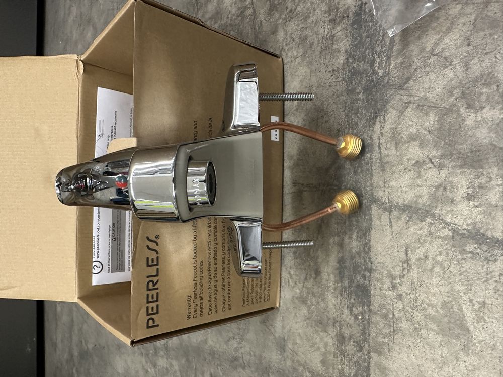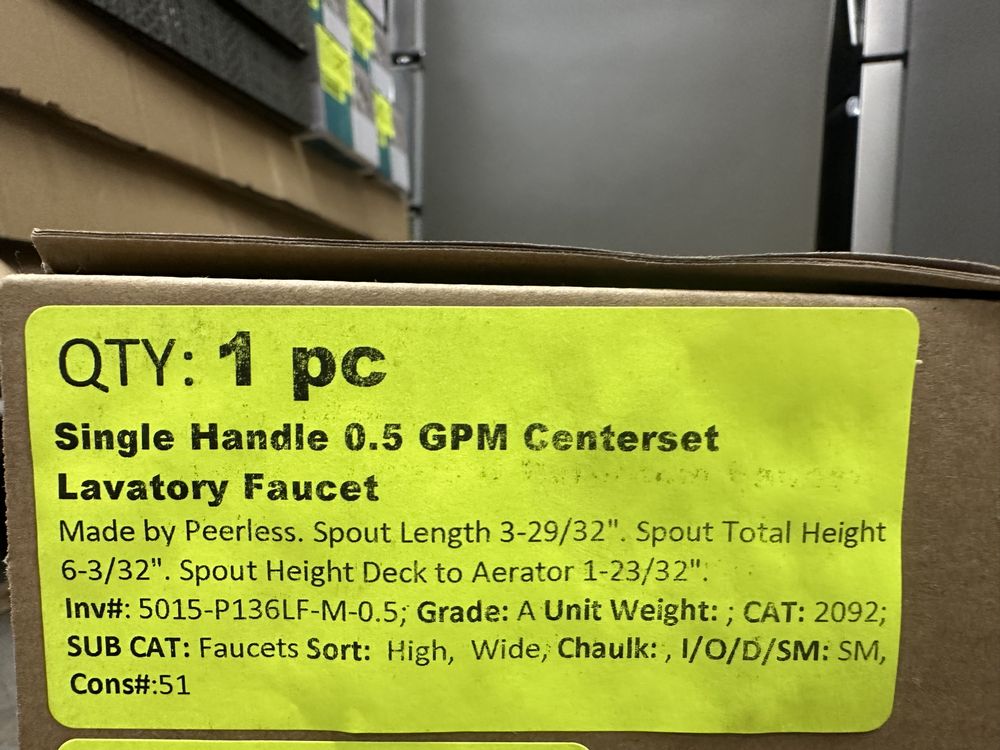 Single Handle 0.5 GPM Centerset Lavatory Faucet. Made by Peerless. Spout Length 3-29/32". Spout Total Height 6-3/32" Spout Height Deck to Aerator 1-23/32" Grade: A. Weight: x. Sold by: Piece. Sold as: Price X Quantity. Inventory #: 5015-P136LF-M-0.5