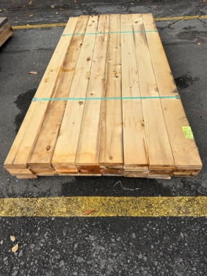 Yellow Cedar Decking 5/4"x6"x8'. Benefits & Advantages: Superior Strength & Density – Highly durable and long-lasting. Natural Rot & Insect Resistance – Contains high levels of natural oils that protect against decay. Distinct Yellow Hue – Starts as a bright yellow-gold color, which weathers to a beautiful silver-gray over time. Highly Workable – Cuts and machines well with minimal splintering, making it a great choice for custom decks. Low Maintenance – Can be left untreated for a naturally weathered look or sealed to maintain its golden hue. Auctioneers Notes: Yellow Cedar Decking offers an exceptional combination of strength, beauty, and longevity. With its stunning golden hue and natural resistance to moisture, it’s the ideal choice for coastal, humid, or high-exposure environments. This durable wood weathers beautifully over time, adding a touch of luxury to any outdoor space. Whether you're building a high-end deck or a long-lasting outdoor structure, this premium material delivers. Bid now to secure top-tier quality! Actual Dimensions 1"x5 1/2"x8', S4S, 240 Board Foot Grade: UTLY&BTR **Mold, Heavy Splits/Cracks, SEE PHOTOS**. Weight: 660. Sold by: Board. Sold as: Price X Quantity. Inventory #: 1033-5/4x06xRL