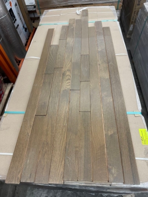 Oak Summit Hardwood Flooring 3/4"x3"xRL. By Mullican Prefinished, 24 Square Foot Per Box, Grade: Cabin/Utility/Tavern Grade:  This flooring product will have varying wood characteristics and colors to include streaks, deeper knots and burls, small splits, wormholes, and even marks during the milling process such as machine burns. It may also have a large variance in color and grain patterns. The boards are typically 10” to 30” with an average board length of 16”. It is usually packaged in mini bundles of 18-20 sf per bundle. It is ok for 5” wide to be heavier in shorter pieces.  Cabin grade is a stable, installable product but please account up to 10%-20% waste. Weight: x. Sold by: Square Foot. Sold as: Price X Quantity. Inventory #: 2132-26054