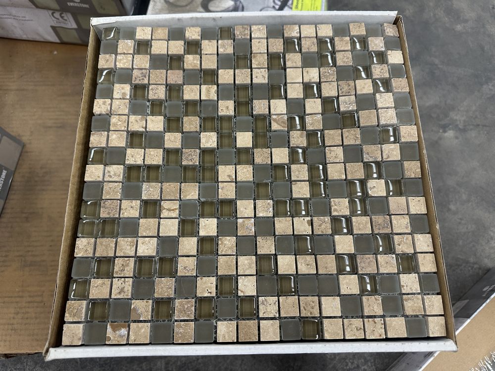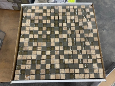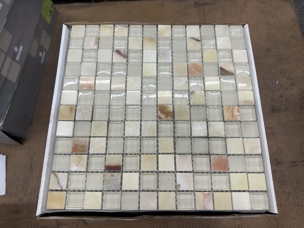 Cream Clear and Frosted Mosaic Tile 12"x12". Everstone, 11 sheets per box, 3 Boxes total, Grade: A. Weight: X. Sold by: Sheet. Sold as: Price X Quantity. Inventory #: 20404-SES 41