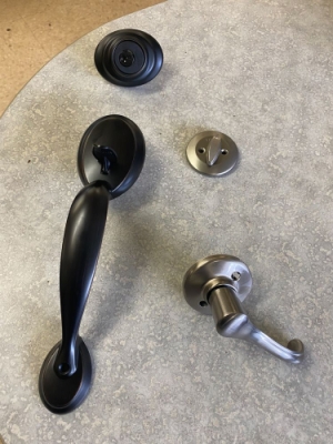 Matte Black Entrance Handleset. By Mega, Comes With Door Lever, Handle, And Deadbolt Lock, Grade: A. Weight: 5. Sold by: Piece. Sold as: Price X Quantity. Inventory #: 5412-75613