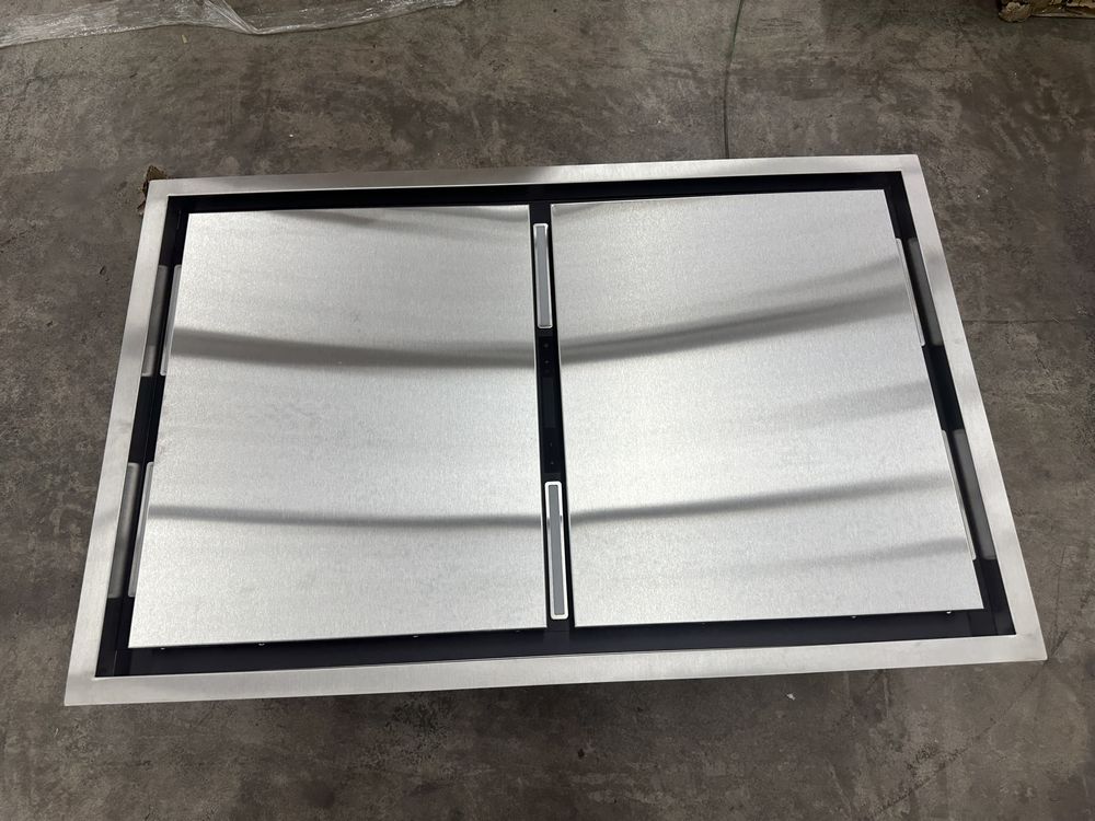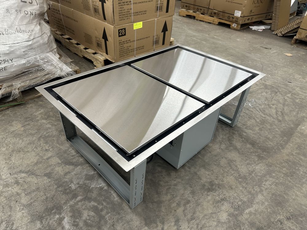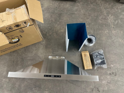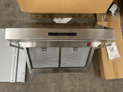 FORNO Arezzo – 44" Ceiling Range Hood With Perimetric Heat, Odor, Gases and Steam Air Capture. Very small bend to one corner. One filter has a small bend. The 44” Forno Arezzo helps create a durable, all stainless steel design. A quiet high-efficiency 1200 CFM of ventilation power. The hybrid mesh filtration system reduces odors and maximizes filtration effectiveness. Designed to be user-friendly to remove, and totally submersible, these filters go right into the dishwasher for the ultimate in easy clean. With versatile fan settings, you can adjust the capture speed based on your cooking needs. No need to change filters – just wash and re-use! It also boasts a remote control, 4-speed settings, and six square LED lights for added style and convenience. Duct Length (in) 6 Duct Width (in.) 6 Product Depth (in.) 43.31 in Product Height (in.) 14.17 in Product Width (in.) 27.56 in Range Hood Size (Width) 43 in. Weight: . Sold by: Piece. Sold as: Price X Quantity. Inventory #: