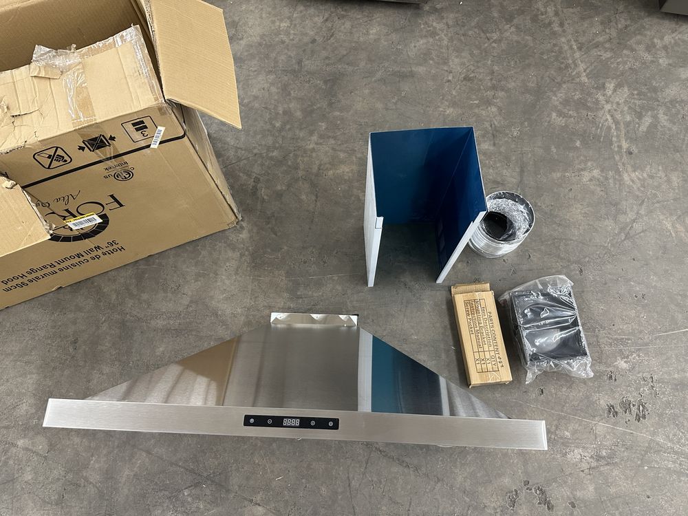 FORNO 36-in 150-CFM Convertible Stainless Steel Wall-Mounted Range Hood With Charcoal Filter. There is a few small scuffs to the top of the hood. This 36 in. Wall Mount Range Hood by Forno offers a durable, all Stainless Steel design and offers 450 CFM of ventilation power. The filtration system includes charcoal filters to reduce odor and maximize filtration efficiency. With versatile fan settings you can adjust the speeds based off your cooking needs. Dimensions Actual Depth (Inches) 19.09 Actual Width (Inches) 35.43 Actual Height (Inches) 10.24 Common Range Hood Size 36 inch. Weight: . Sold by: Piece. Sold as: Price X Quantity. Inventory #: