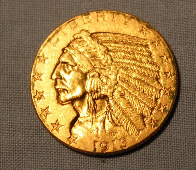1913 Indian Half Eagle $5 gold U.S. coin.