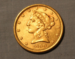 1900 Liberty $5 gold U.S. coin.