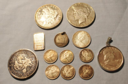 Items include 1900 Liberty $5 gold U.S. coin; 2002 China gold panda coin 1/20 ounce AU.999 5 Yuan mounted in a 14k gold pendant; Morgan silver dollars; U.S. Mint Prestige coin sets including 1986, 1989, 1990, 1992 & 1995 with boxes and COAs; Judith Ripka womens wrist watch with mother of pearl face; Stamped 14K gold necklace; Walking Liberty half dollars; 14K stamped rose gold bracelet with many small diamonds; Two pearl necklaces, both having 10K gold clasp; Foreign paper currency varying in country and denominations and much more! Items are located in Pleasant Valley, NY.