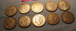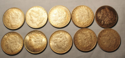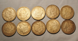 10 Morgan silver dollars including an 1896 O; 1897 O; 1897 S; 1898; 1898 S; 1899 O; 1900; 1900 O; 1901 O; 1901.